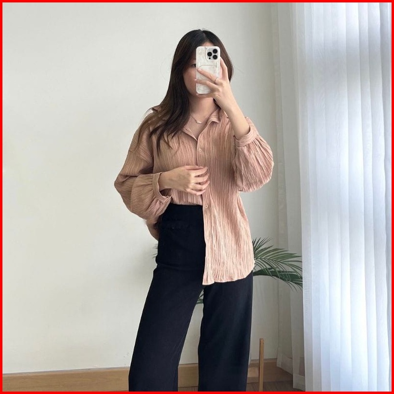 Mj Style - Kemeja Wanita Oversize - Basic Shirt Kemeja - Bahan Lady Crush.