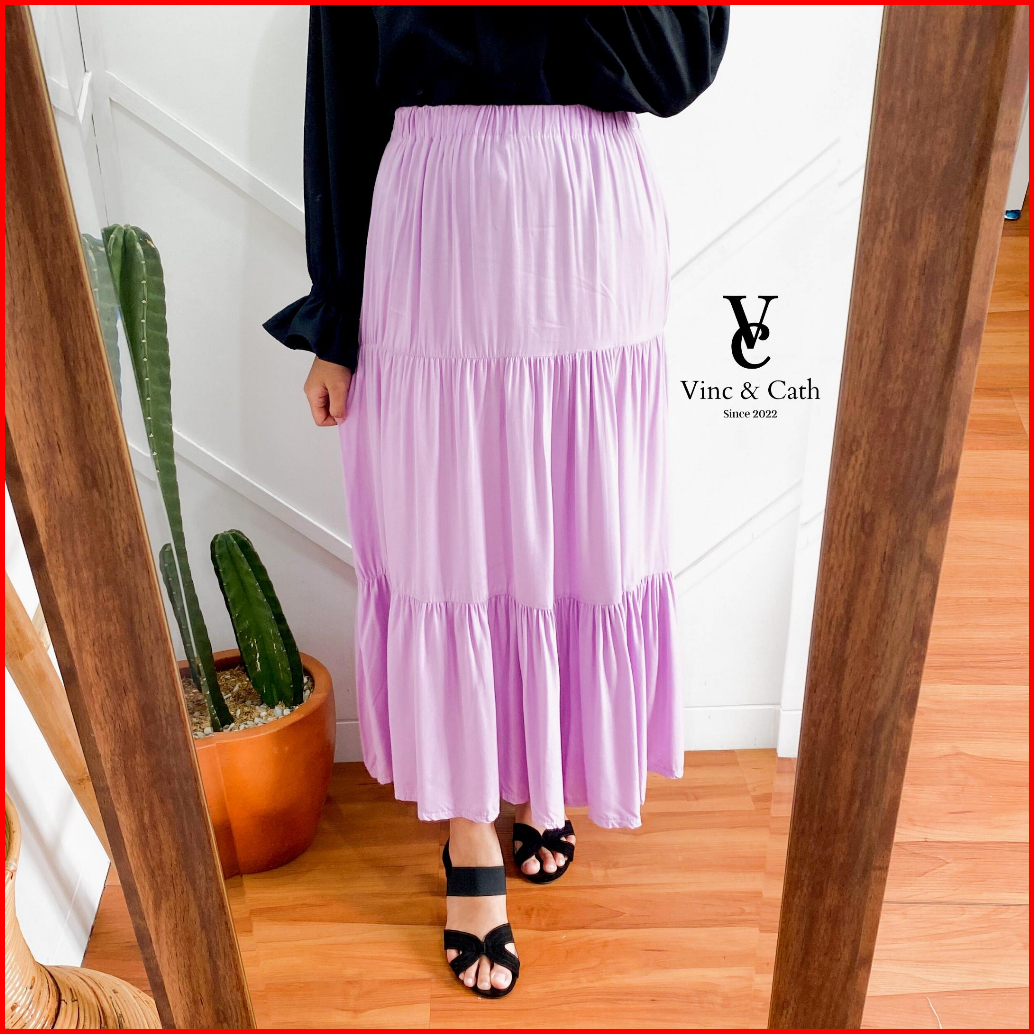 Vincath.id - Rok Skirt Katun Rayon Wanita Cewek Bahan Terbaru Kekinian Premium Murah Remaja Dewasa Hijab Kuliah Kerja Ka