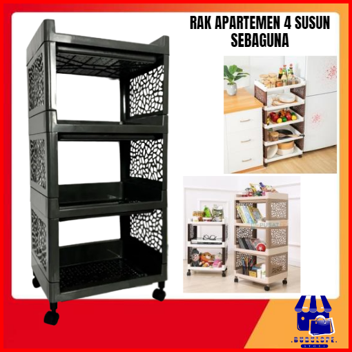 Rak Yoyo Rak Serbaguna Roda Rak Apartemen 4 Susun