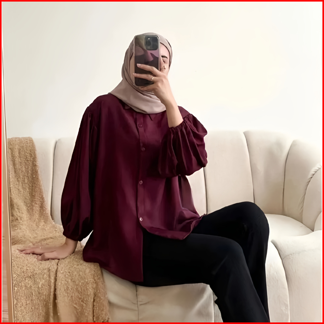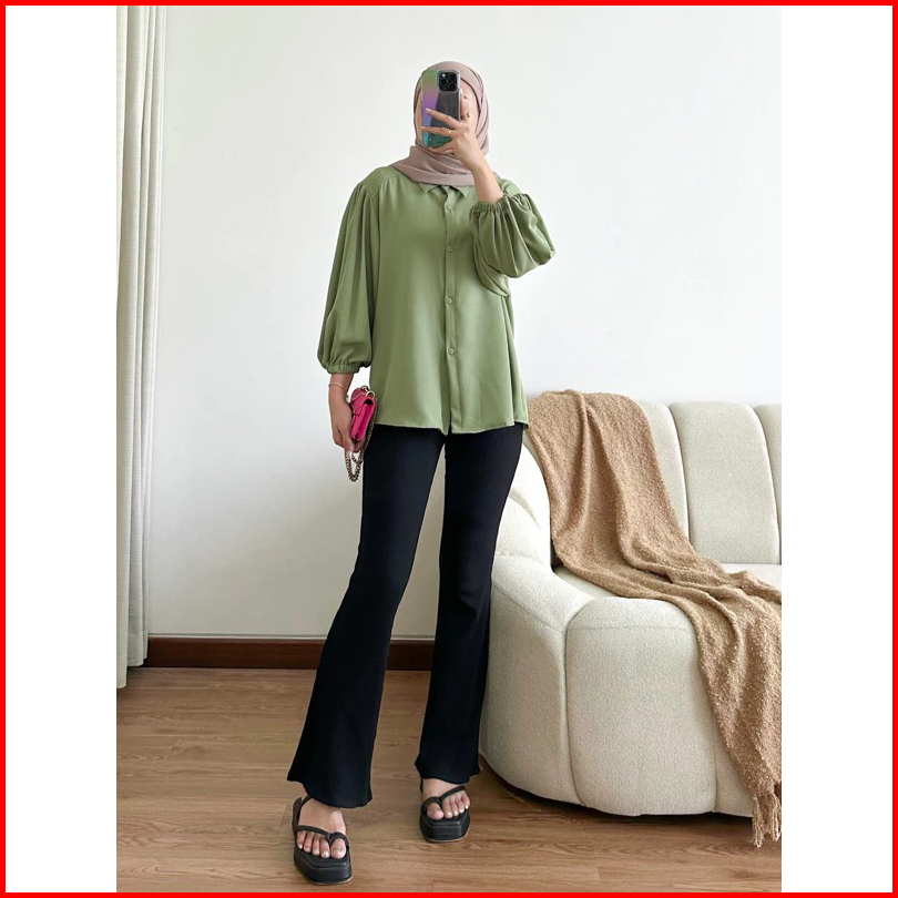 Zea Blouse Syakila Kemeja Polos Wanita Tangan Puffy Panjang 3 4 Ukuran Jumbo S M L Xl Xxl 3xl 5xl
