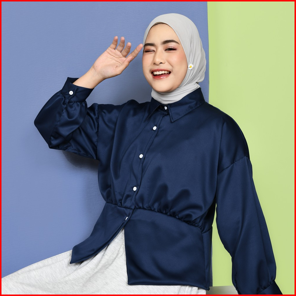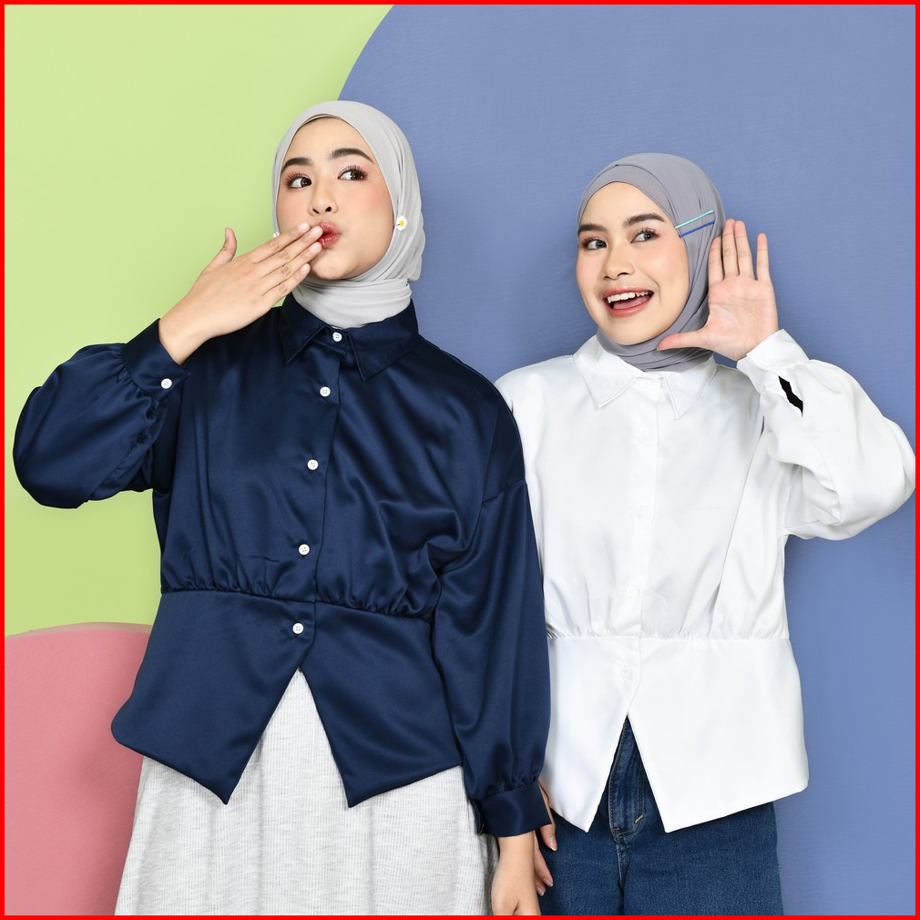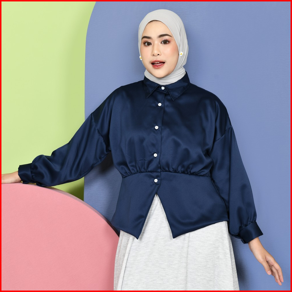 Mybamus Kalya Shiny Tops Kemeja Wanita Atasan Lengan Panjang Wanita