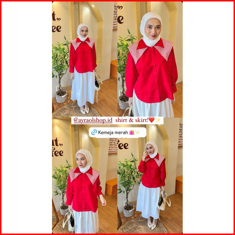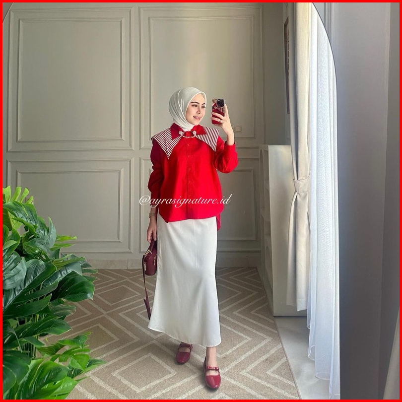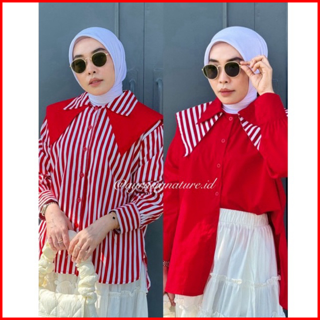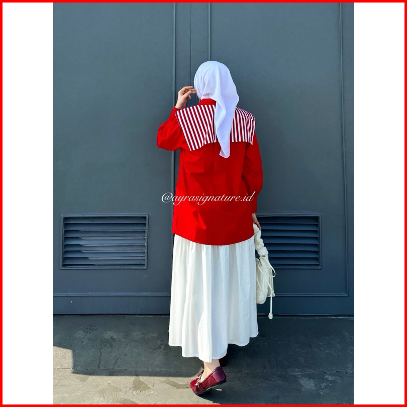 Kemeja Katun Merah Putih Kerah Sailor