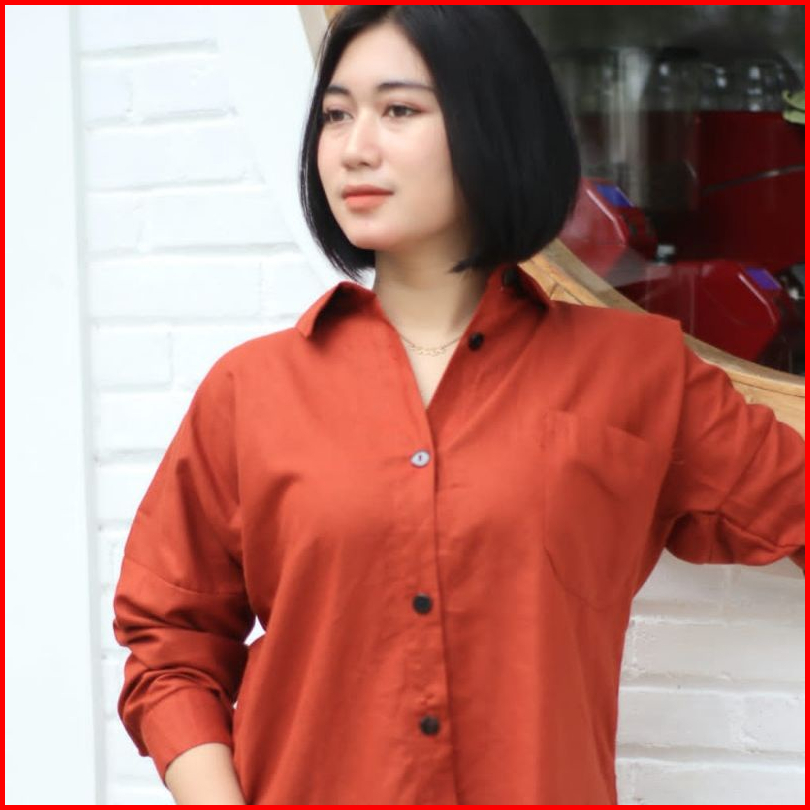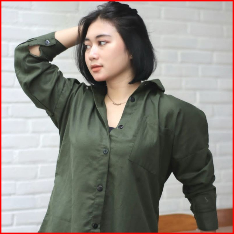 Kemeja Wanita Linen Oversize Olivia Shirt Linen Pocket Premium Tebal