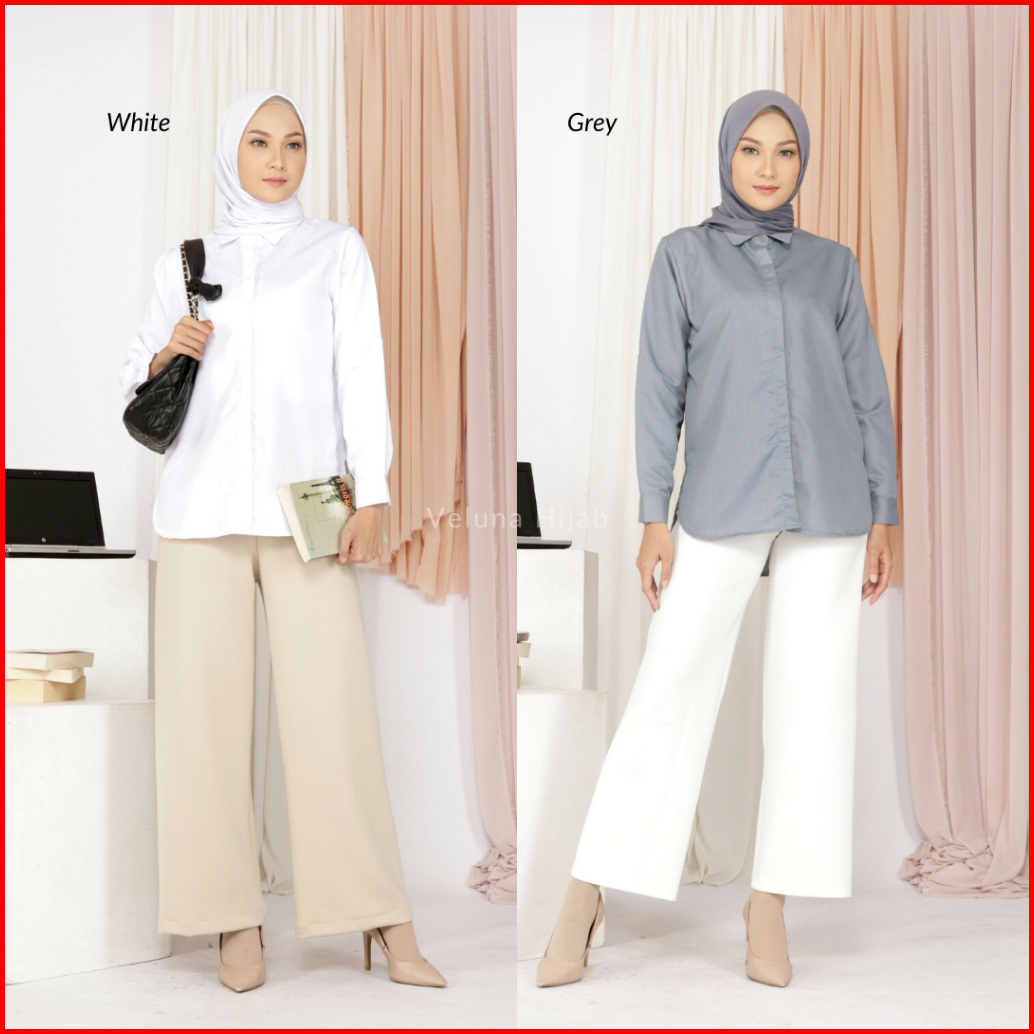 Veluna - Kemeja Basic Toyobo - Vah057 - Kemeja Putih Wanita Atasan Kerja Magang Bahan Toyobo