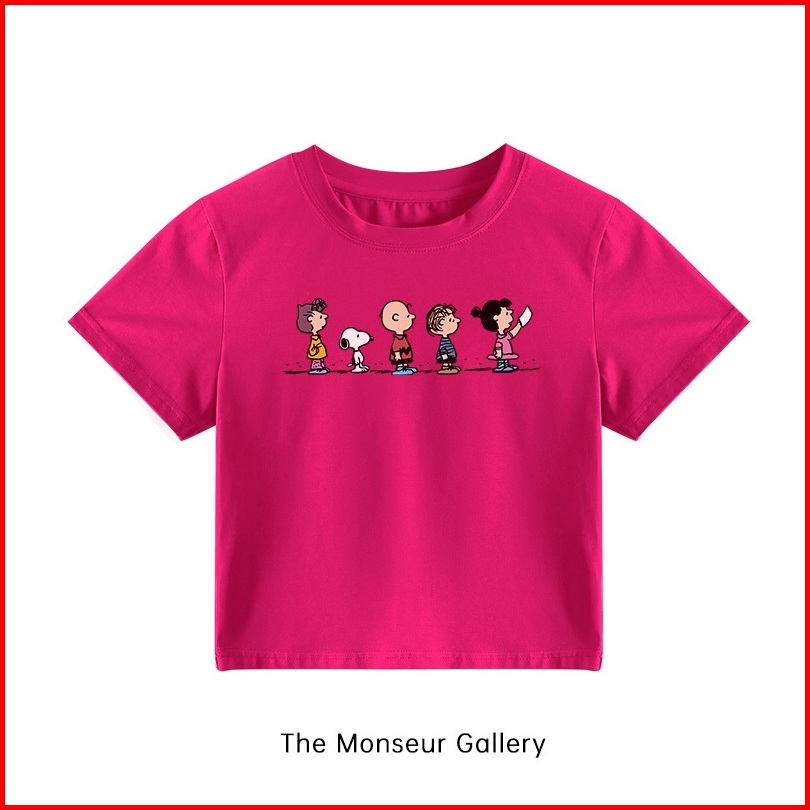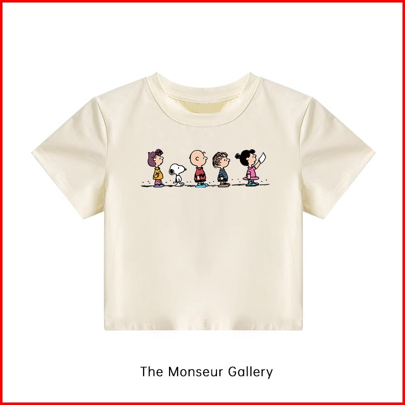 The Monseur Gallery Kaos Crop Wanita Slimfit Snoopy Baju Croptee Cream Korea