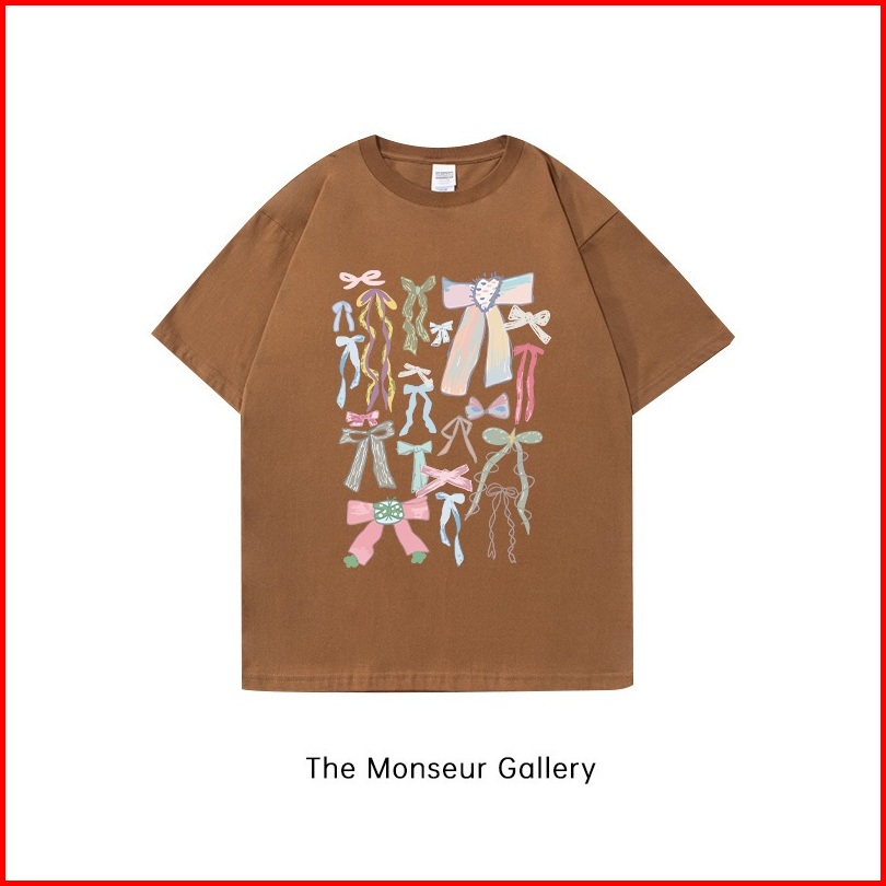 The Monseur Gallery T-shirt Oversize Cetakan Dasi Kupu-kupu Kaos Wanita Cream