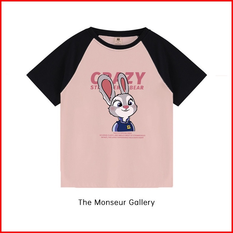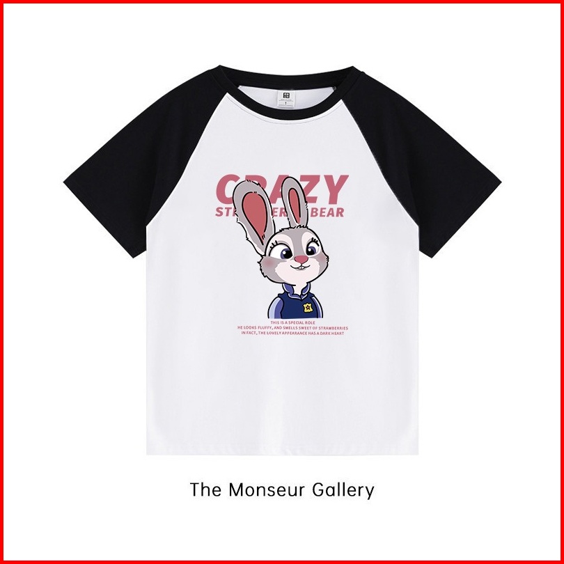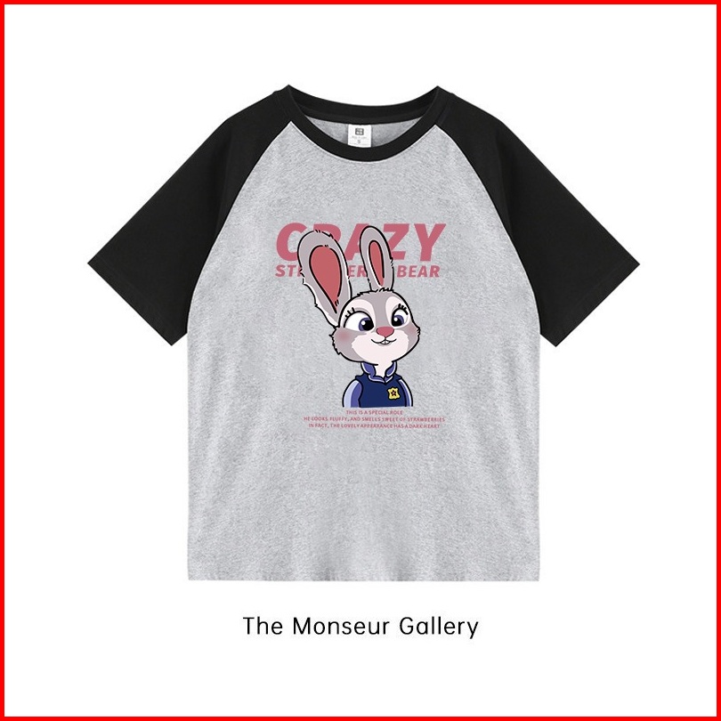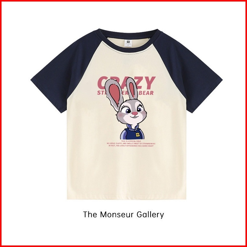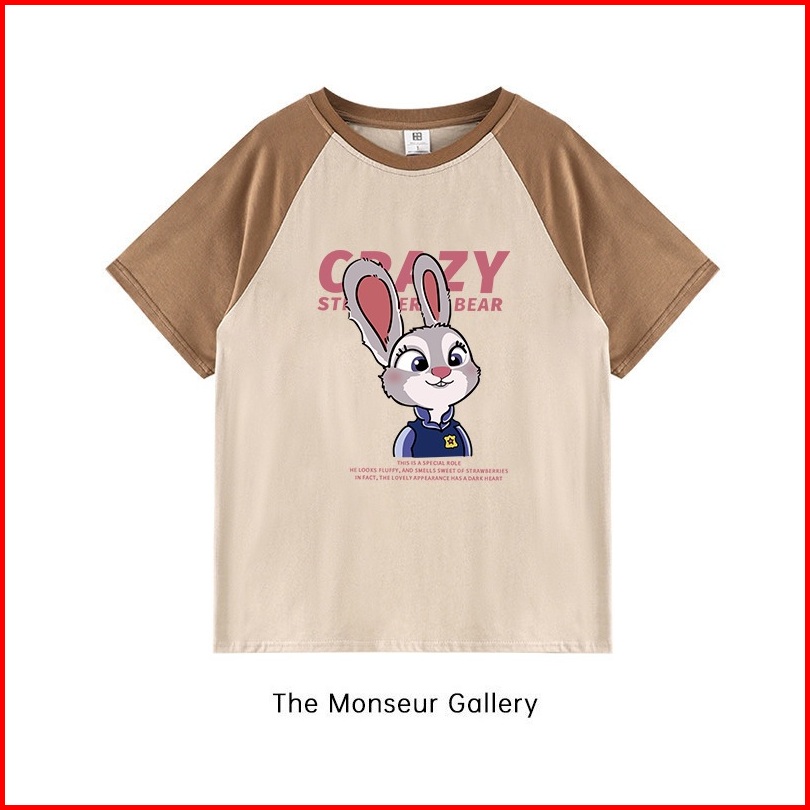 The Monseur Gallery Kaos Raglan T-shirt Oversize Petugas Kelinci Kaos Wanita Cream Merah Anggur