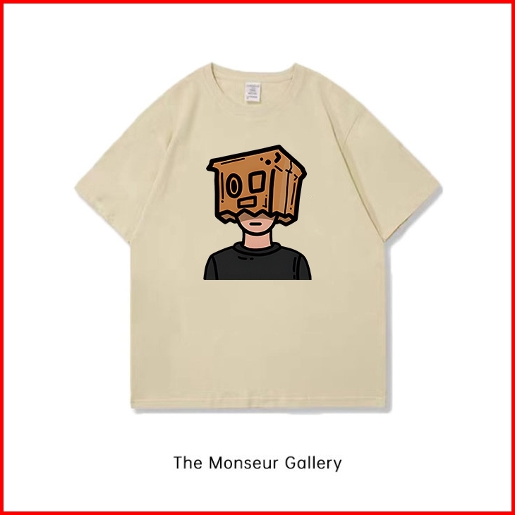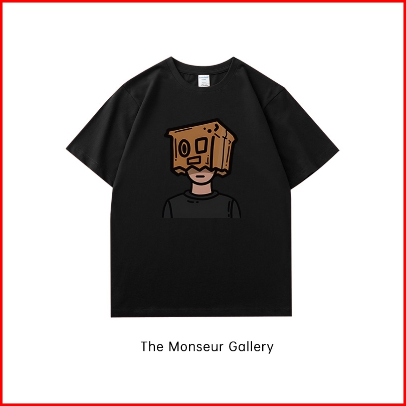 The Monseur Gallery T-shirt Washed Oversize Pria Memakai Topeng Kardus Kaos Wanita Hitam