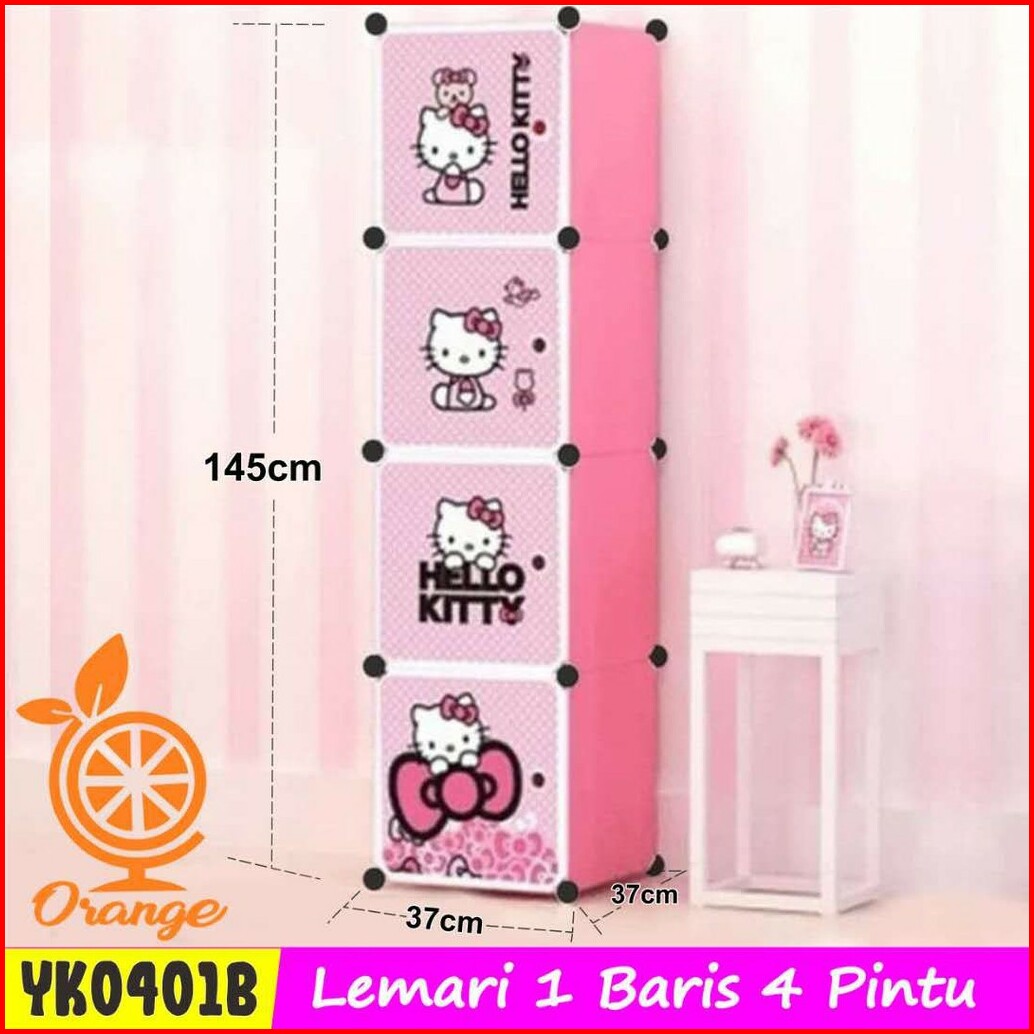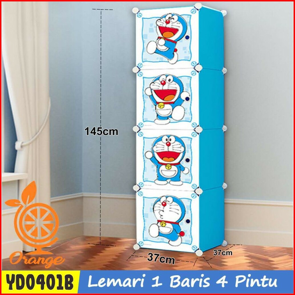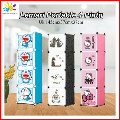 Lemari Pakaian Plastik Kartun 4 Pintu Lemari Susun Serbaguna Rak Gantungan Lemari Minimalis Lemari Hemat Tempat Lemari P