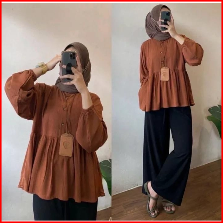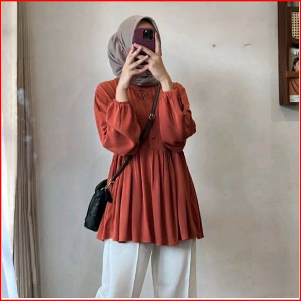 Alena Id Raisa Blouse Kemeja Polos Lengan Panjang Bahan Rayon Premium Atasan Wanita Ootd Hijab Terbaru Adem Dan Lembut