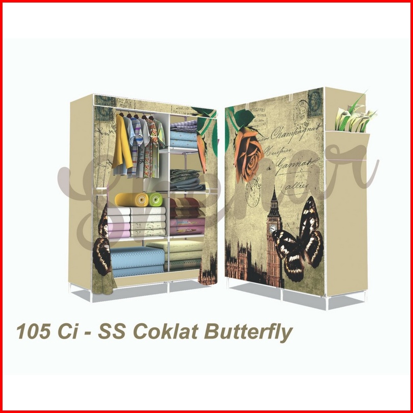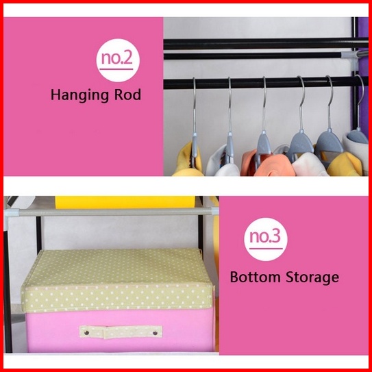 Lemari Pakaian Portable Lemari Kain Resleting Lemari Minimalis Mudah Dirakit Ukuran 105 X 45 X 170 Cm