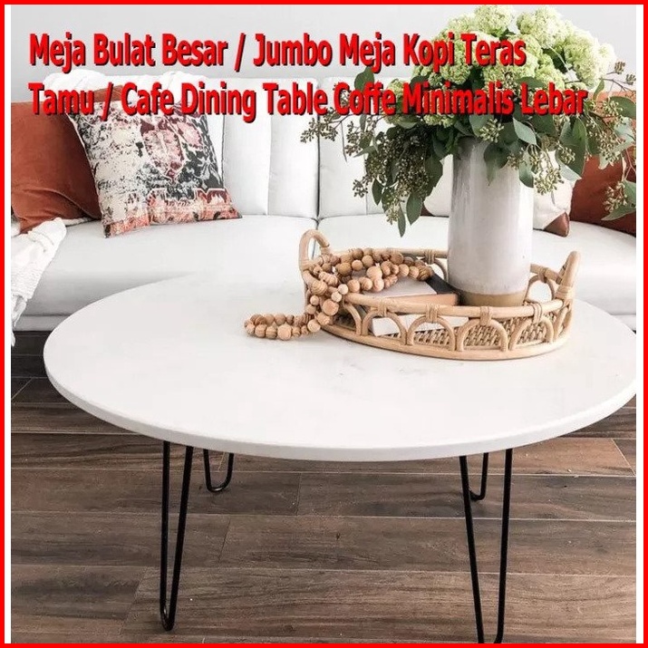 Meja Bulat Besar Jumbo Meja Kopi Teras Tamu Cafe Dining Table Coffe Minimalis Lebar