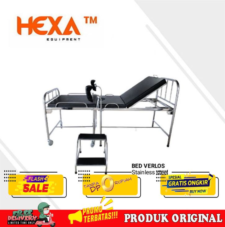 TANPA DP BED PERSALINAN BED PARTUS BED VERLOS TEMPAT MELAHIRKAN STAINLESS STEEL PLUS TANGGA PIJAKAN