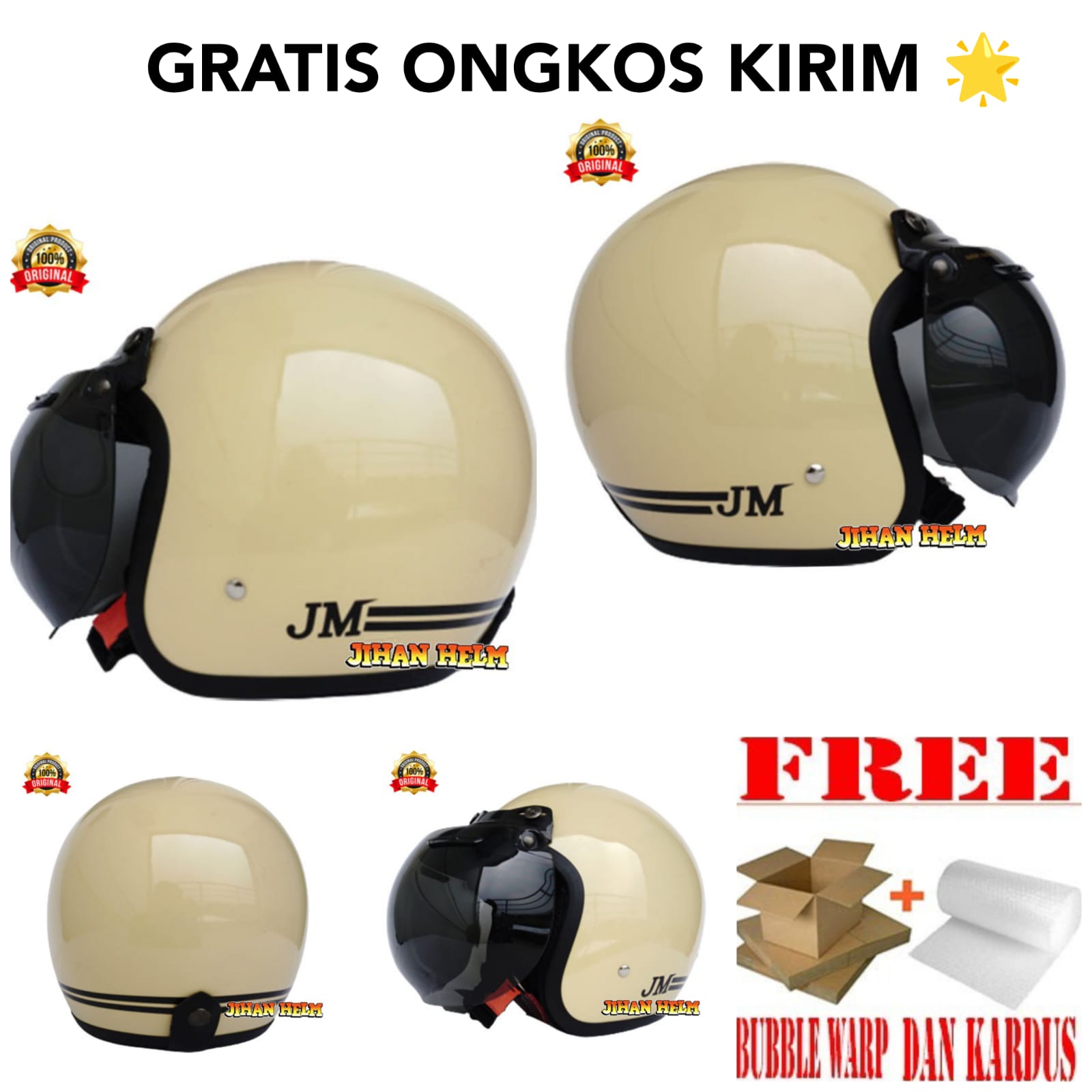 HELM / HELM RETRO / HELM BOGO / JM / HELM RETRO BOGO / HELM RETRO BOGO JM CREAM TERMURAH