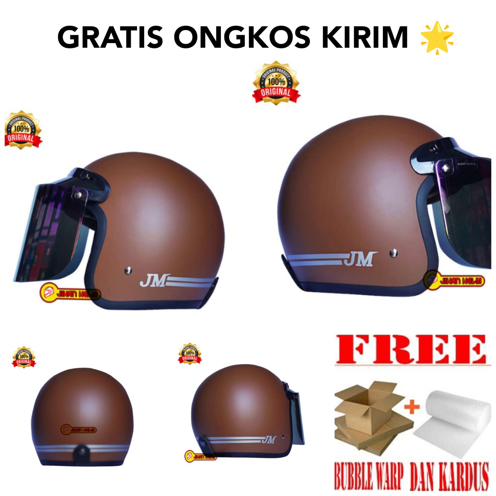 HELM / HELM RETRO / HELM BOGO / JM / HELM RETRO BOGO / HELM RETRO BOGO JM COKLAT DOFF FLAT TERMURAH