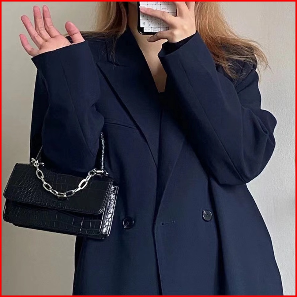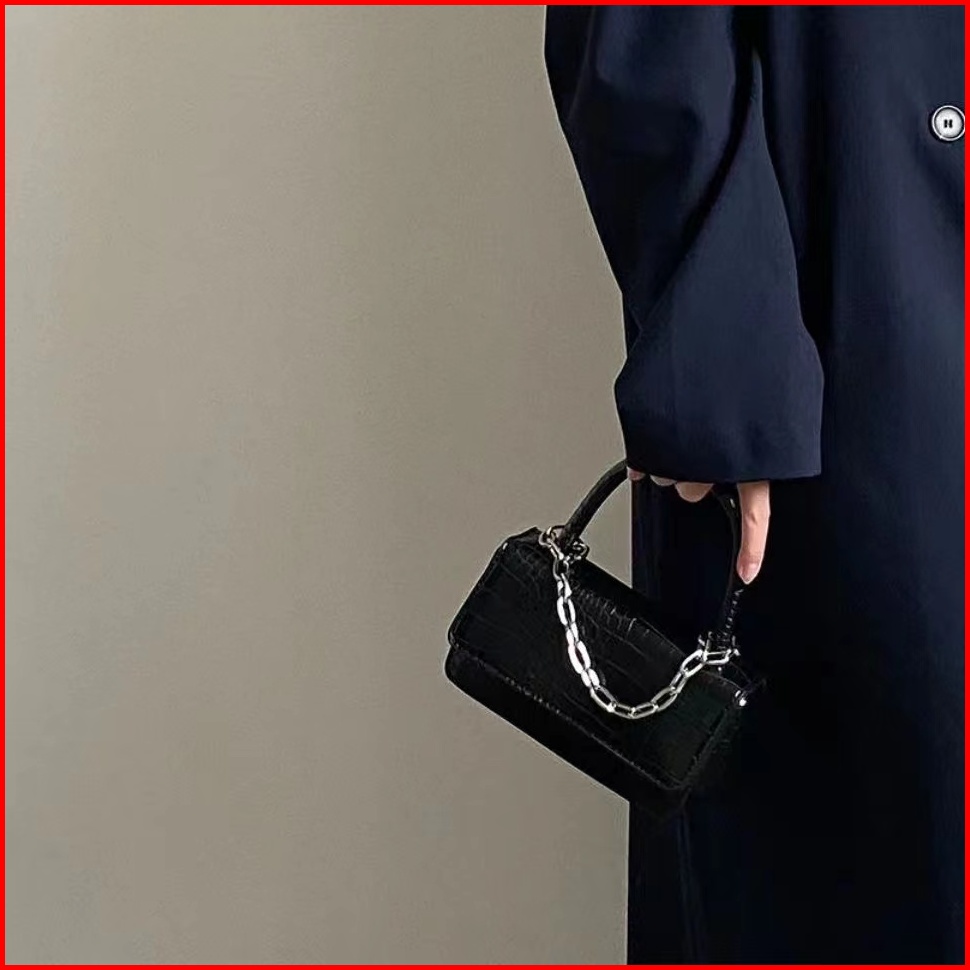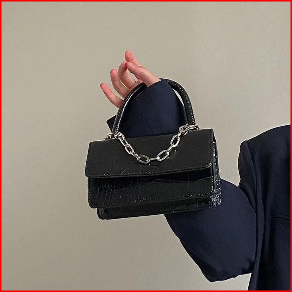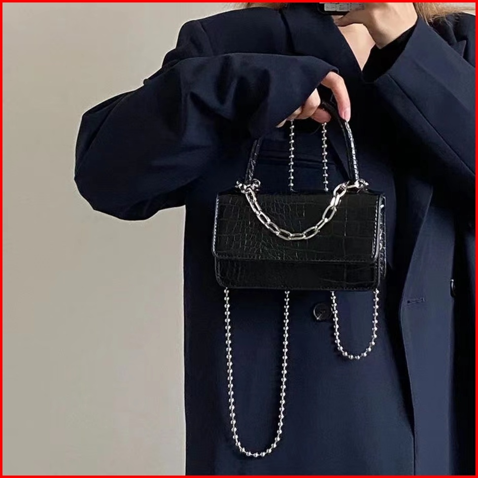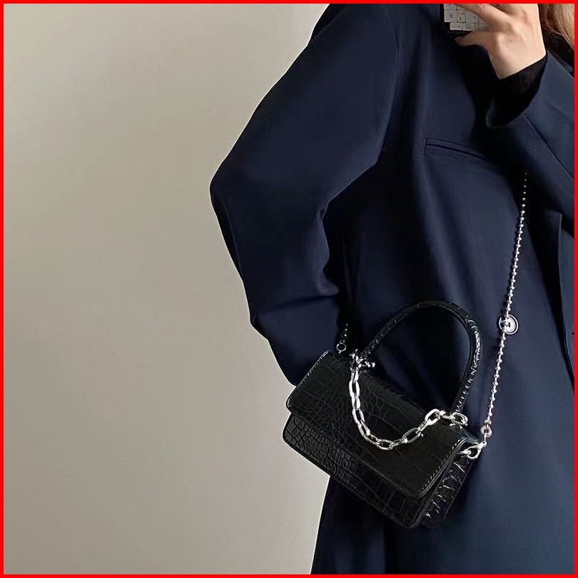 Retro Kepribadian Sederhana Buaya Pola Rantai Tas Messenger Satu Bahu Satu Bahu Flip Tas Persegi Kecil Wanita