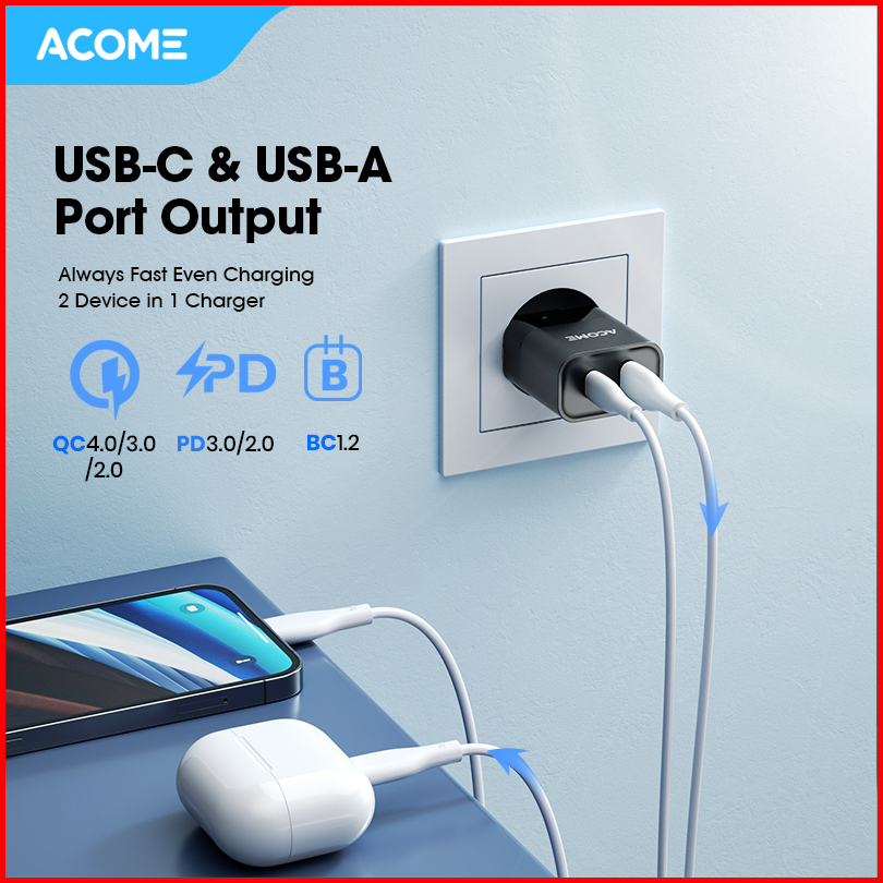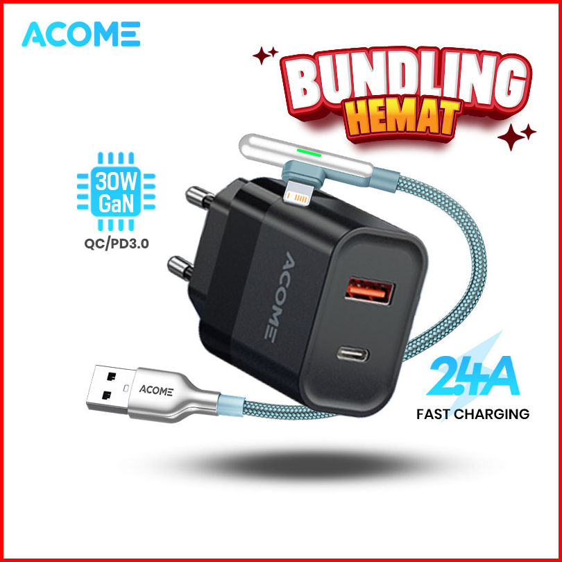 Acome Bundling Hemat Charger Gan 30w Dual Port Fast Charging Acg30 Pro Kabel Data Gaming Fast Charging Type-c Lightning