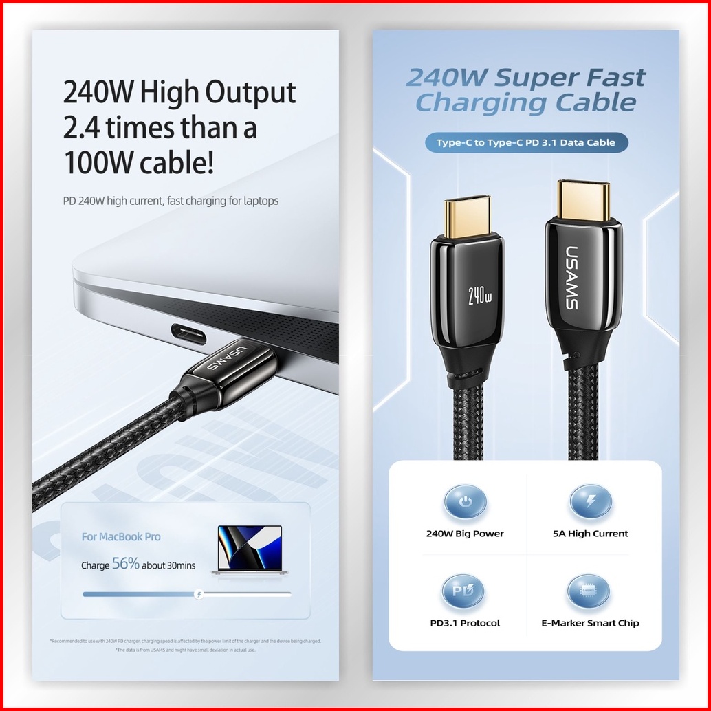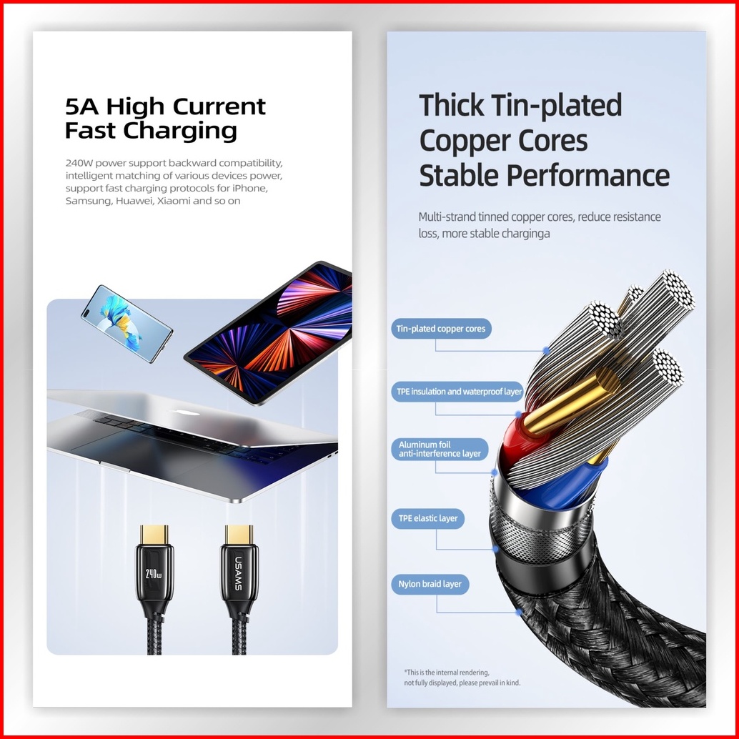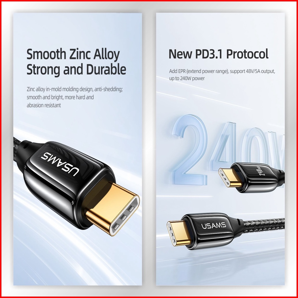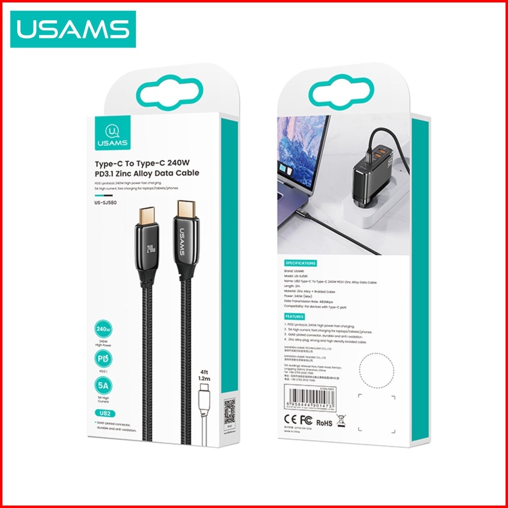 Usams U82 Kabel Data Type C To Type C Pd3.1 240w Zync Alloy