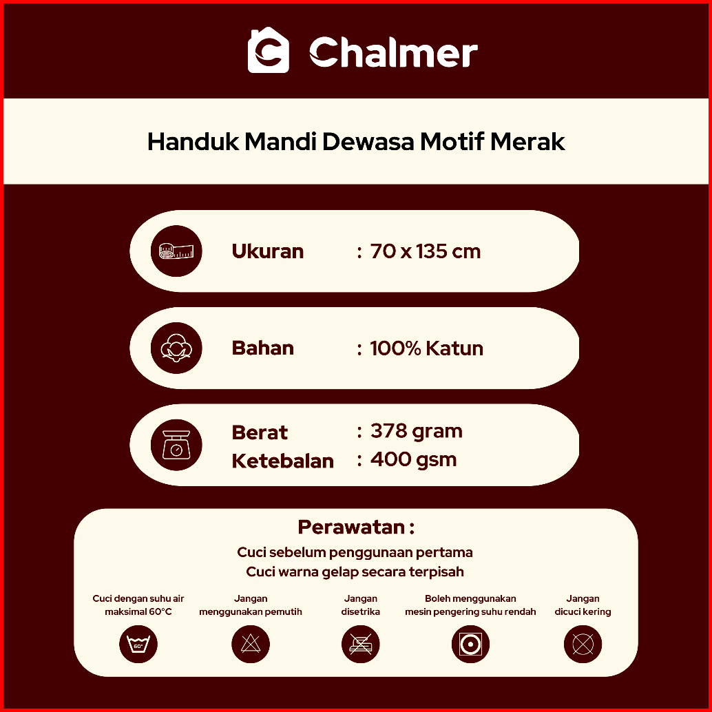 Handuk Mandi Chalmer 70 X 135 Cm Motif Merak Handuk Mandi Dewasa Ukuran Besar