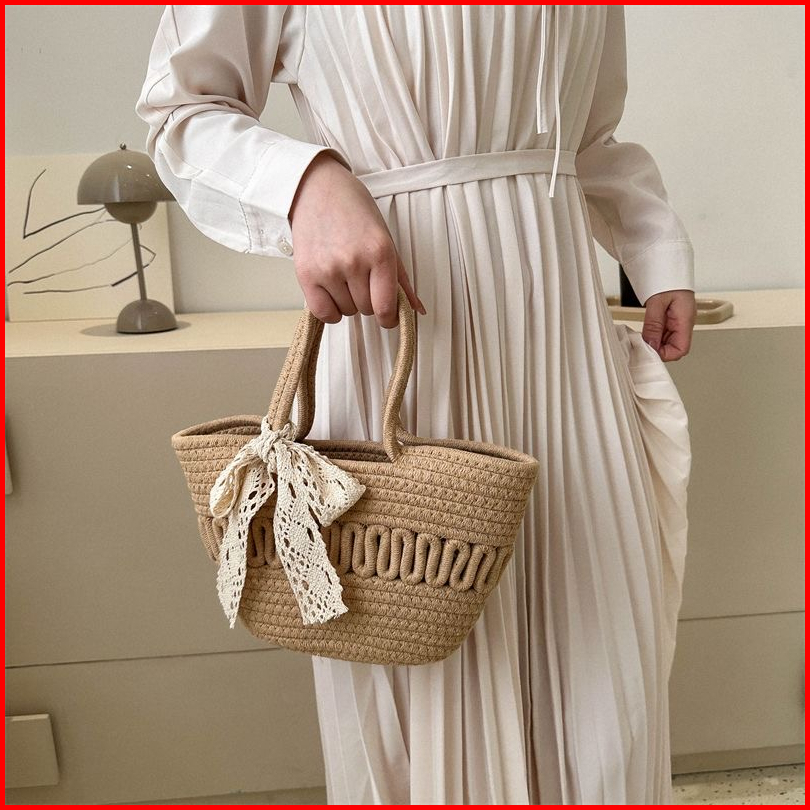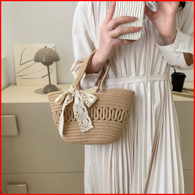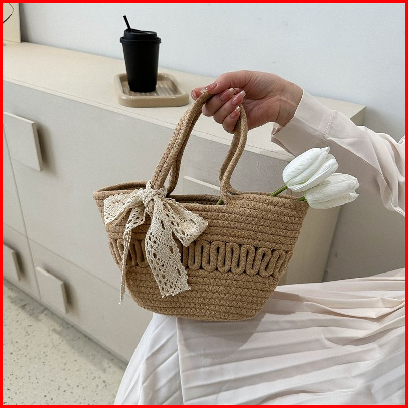 Tas Wanita Woven Small Satchel Bag Women Straw Bag Seaside Vacation Tote