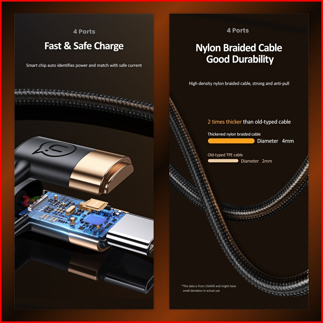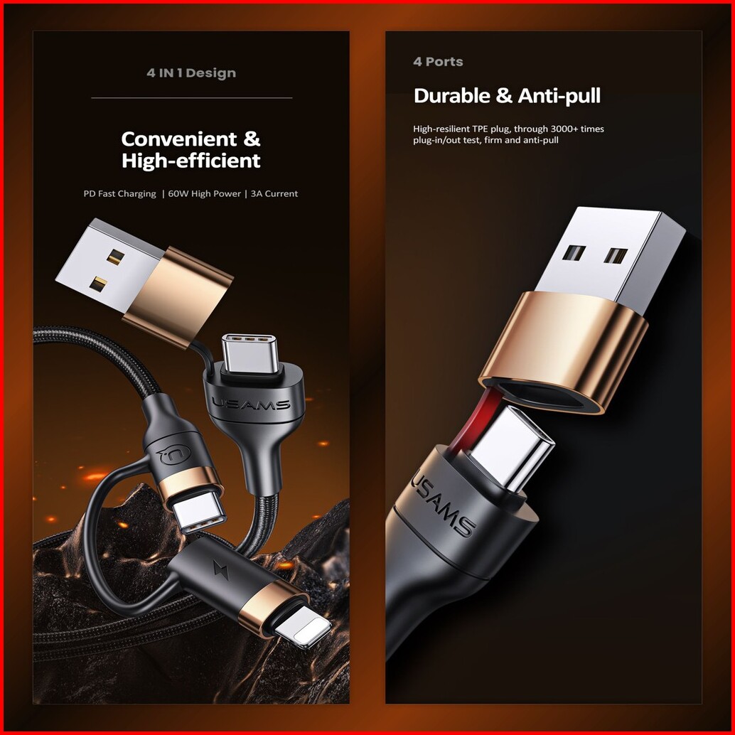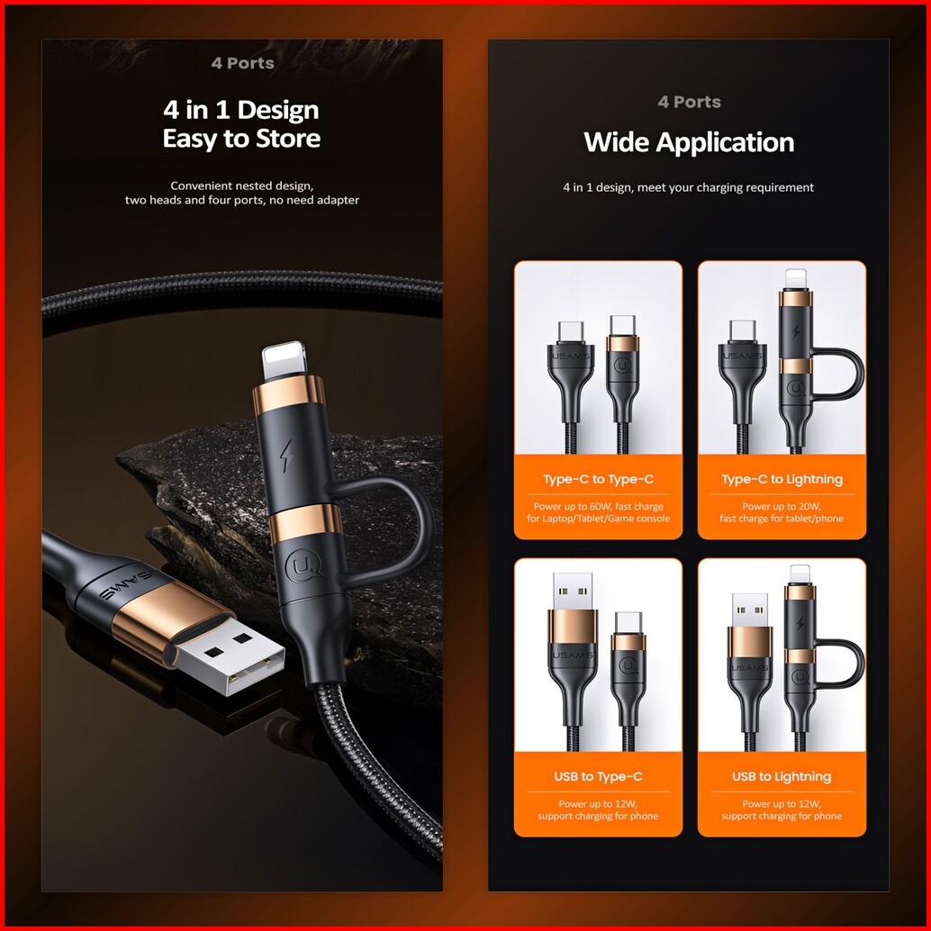 Usams U62 Kabel Data Usb-type C To Type C Lightning Pd Fast Charging