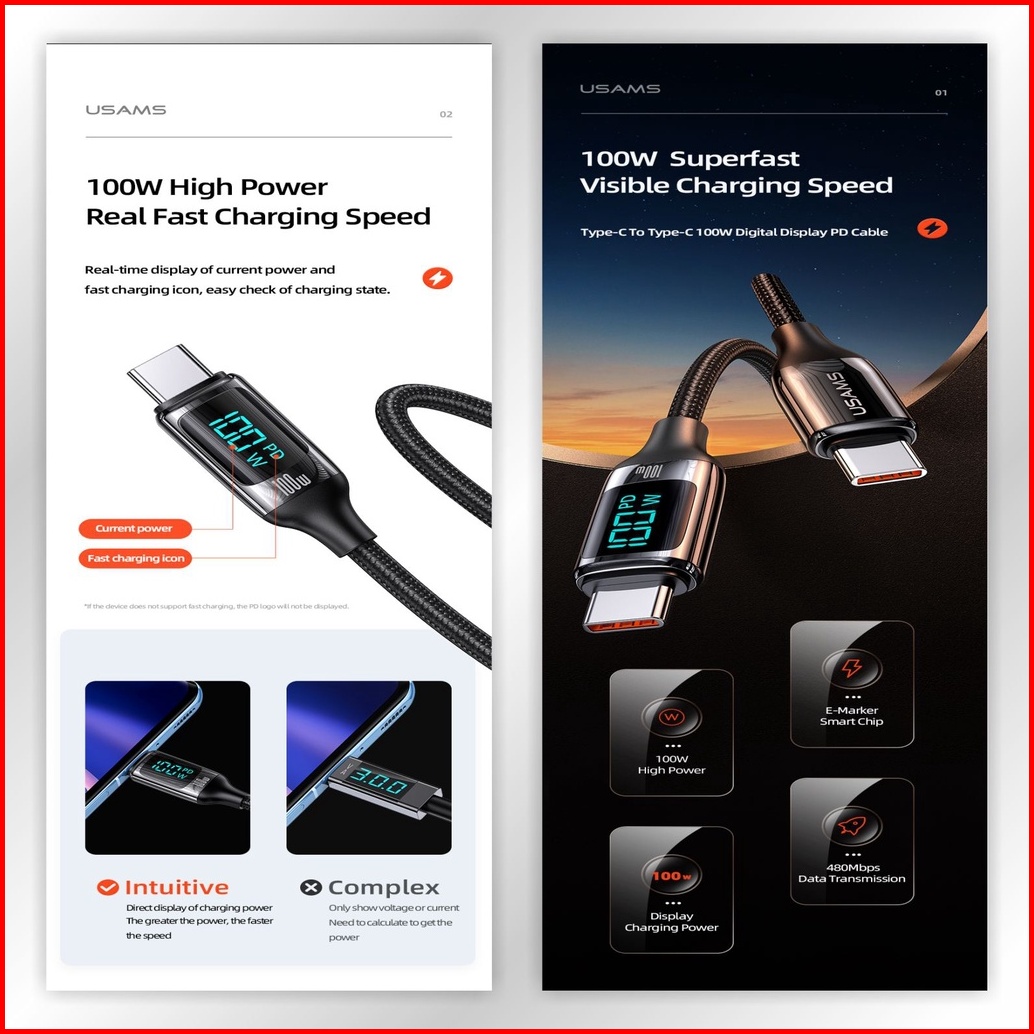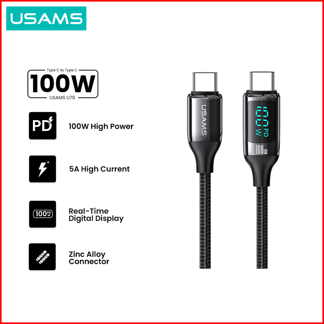 Usams U78 Kabel Data Fast Charging Type C To Type C Digital Display 100w