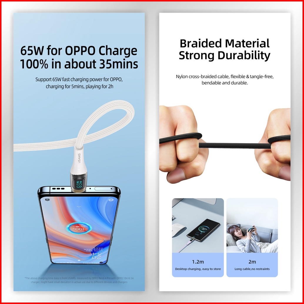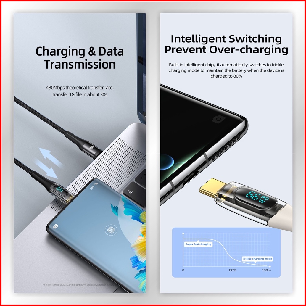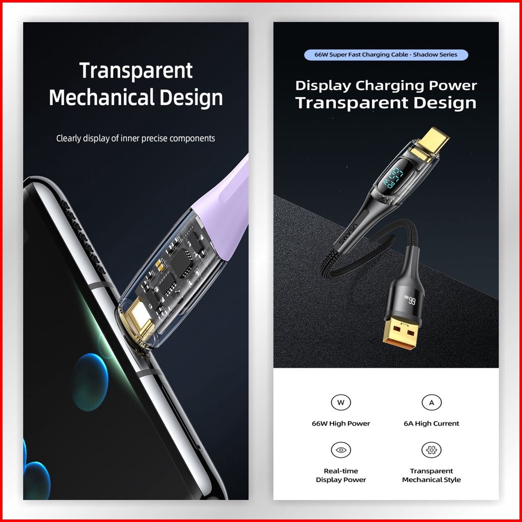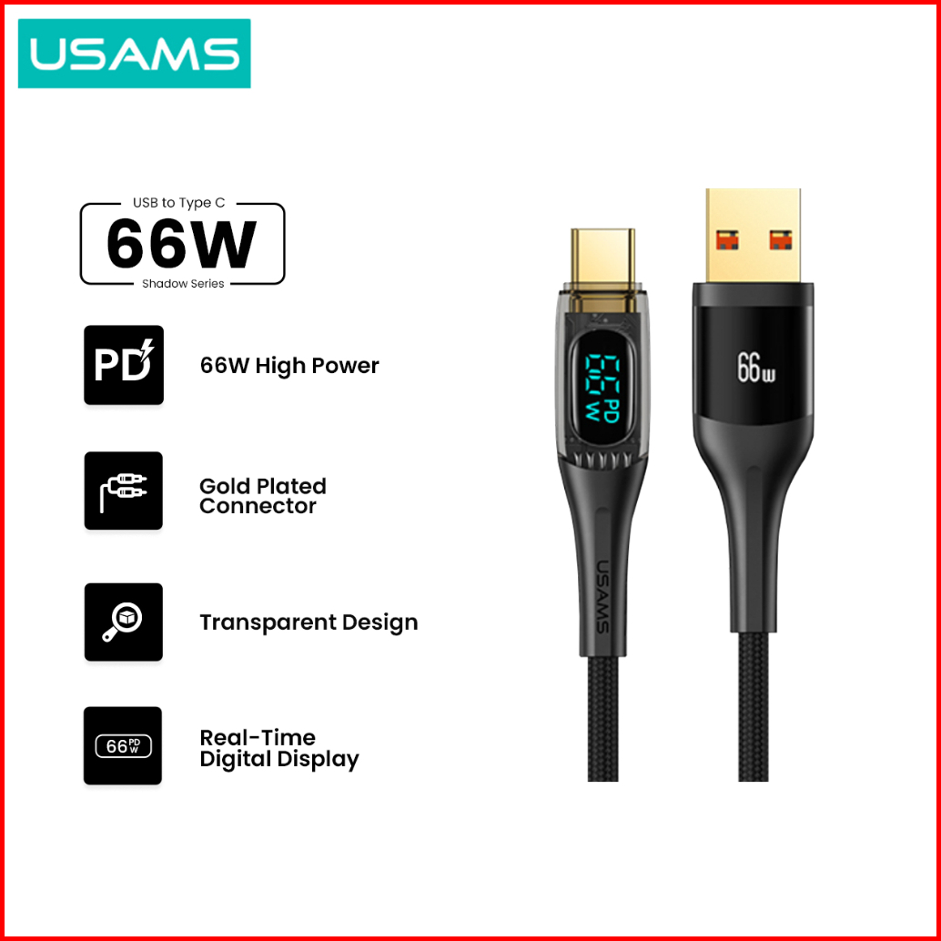Usams Shadow Series Kabel Data Type C 66w Transparent Digital Display