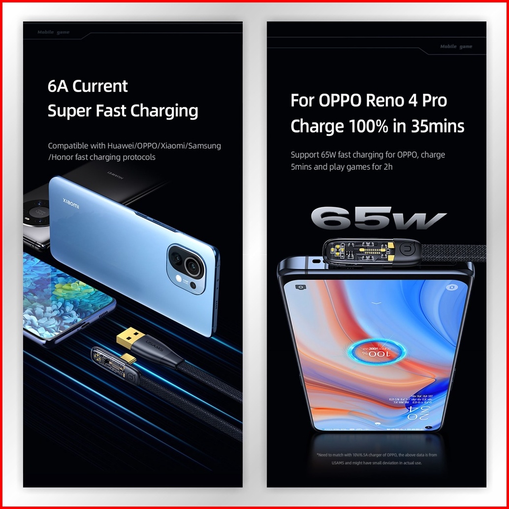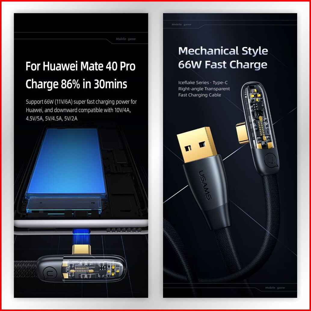 Usams Iceflake Kabel Data Gaming Fast Charging Usb To C 66w 6a