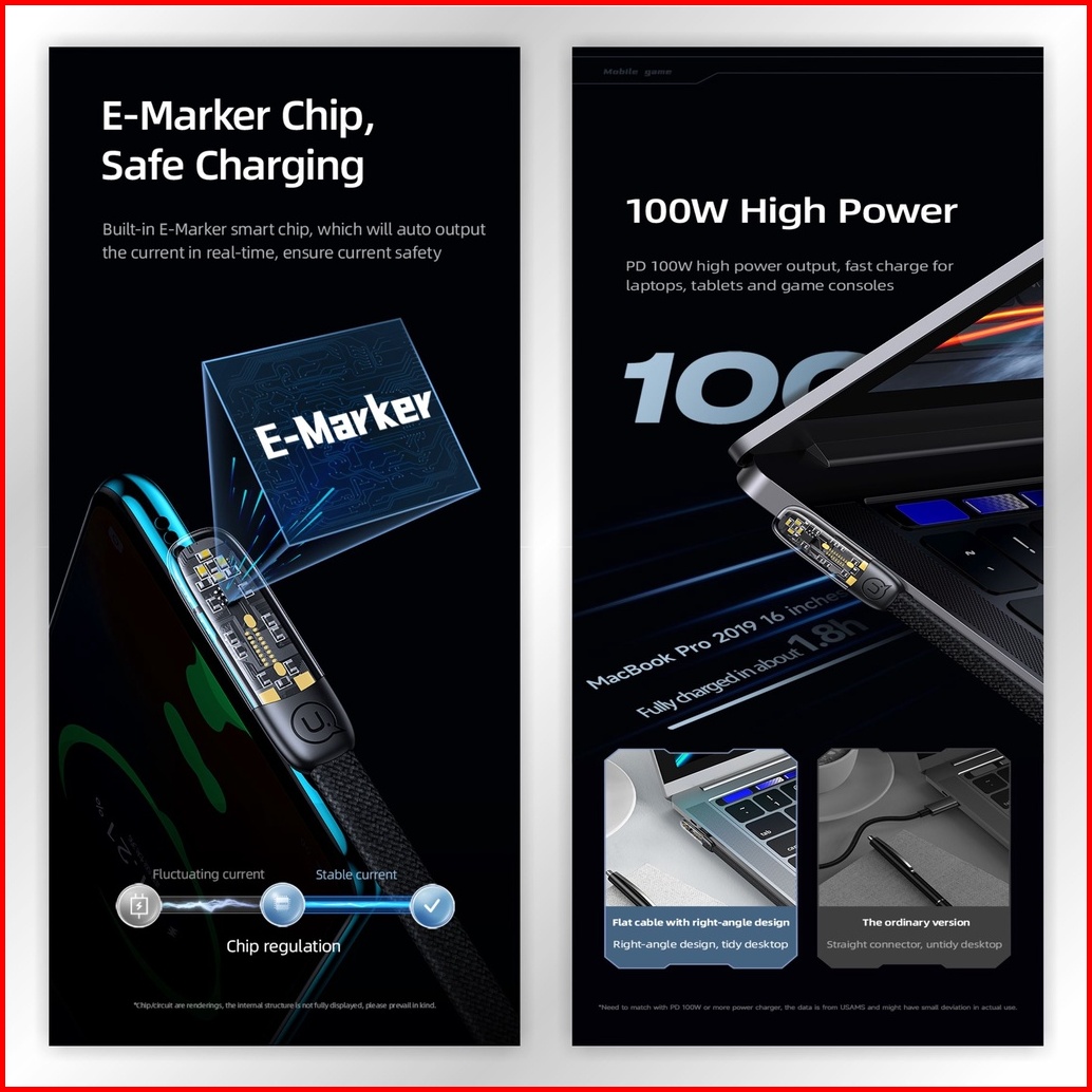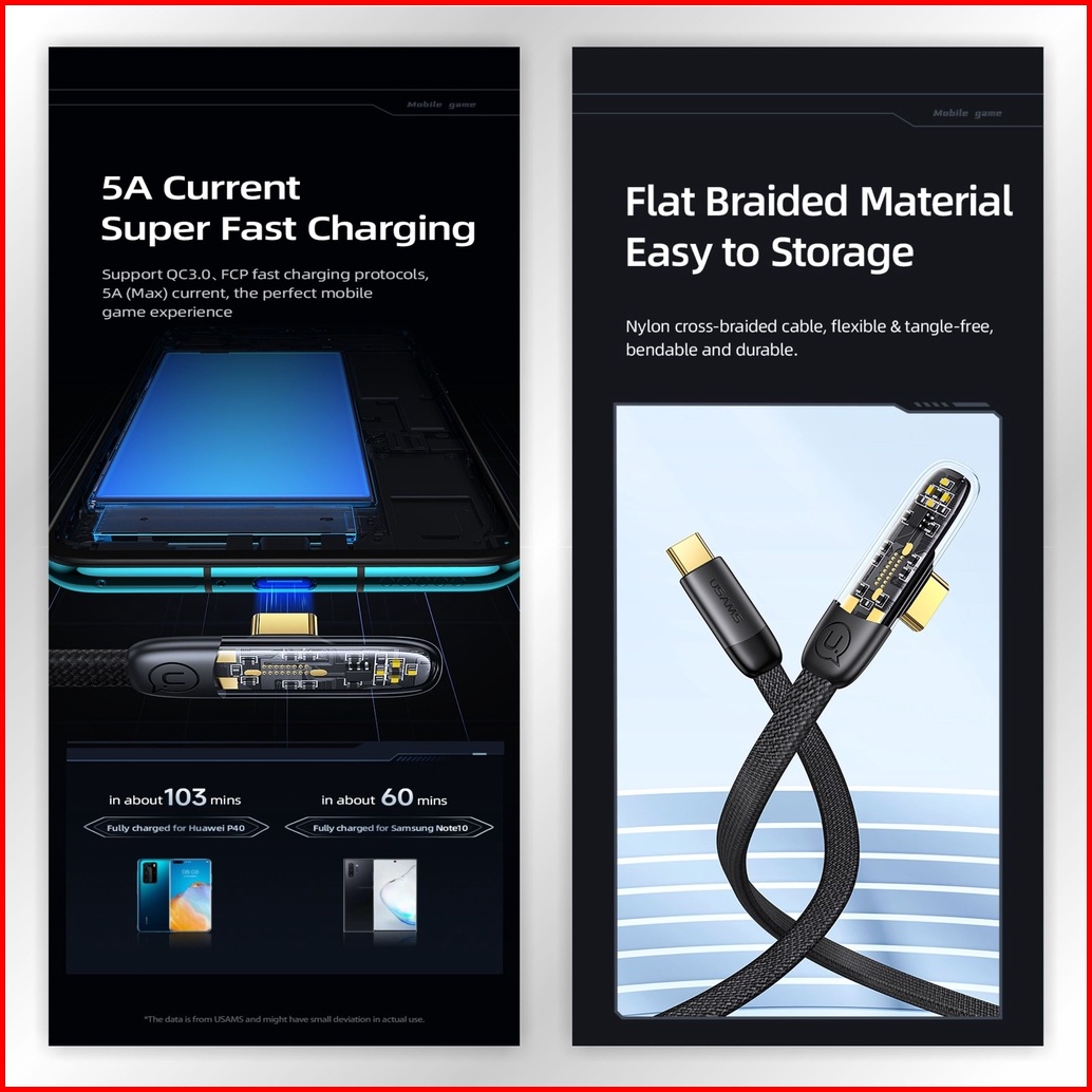 Usams Iceflake Kabel Data Gaming Type C To Type C Pd 100w