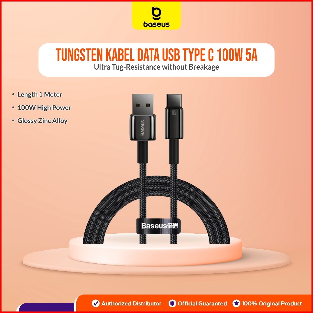 Baseus Original Tungsten Kabel Data Usb Type C 100w 6a Fast Charging Cable Charger Casan Tipe C Ori 5a