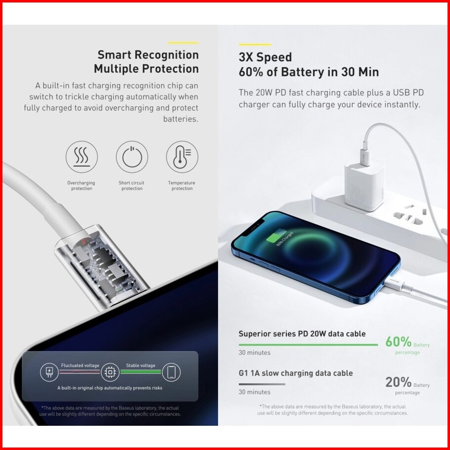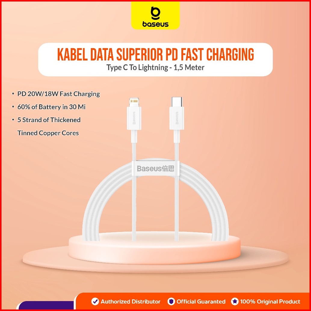 Baseus Superior Kabel Data Type C To Lightning 20w 1.5m 1.5 Meter Pd Power Delivery Fast Charging Cable Charger Casan Ip