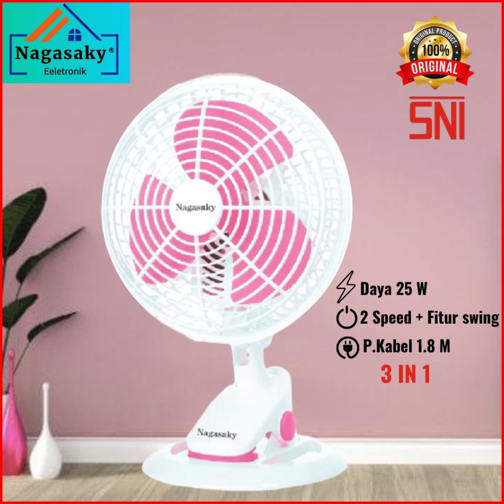 Kipas Angin Meja Dinding Jepit Desk Fan Nagasaky Ng-180j 25w 3 In 1
