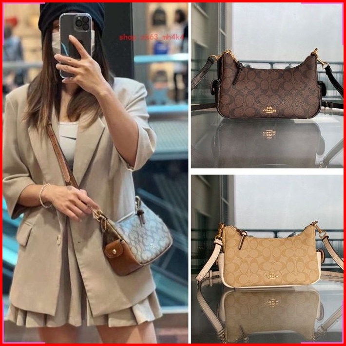 C0ach Tas Selempang Wanita Luxury Pennie Chalk 25 Sig In Signature Top Handle Bags Women Crossbody Choacted