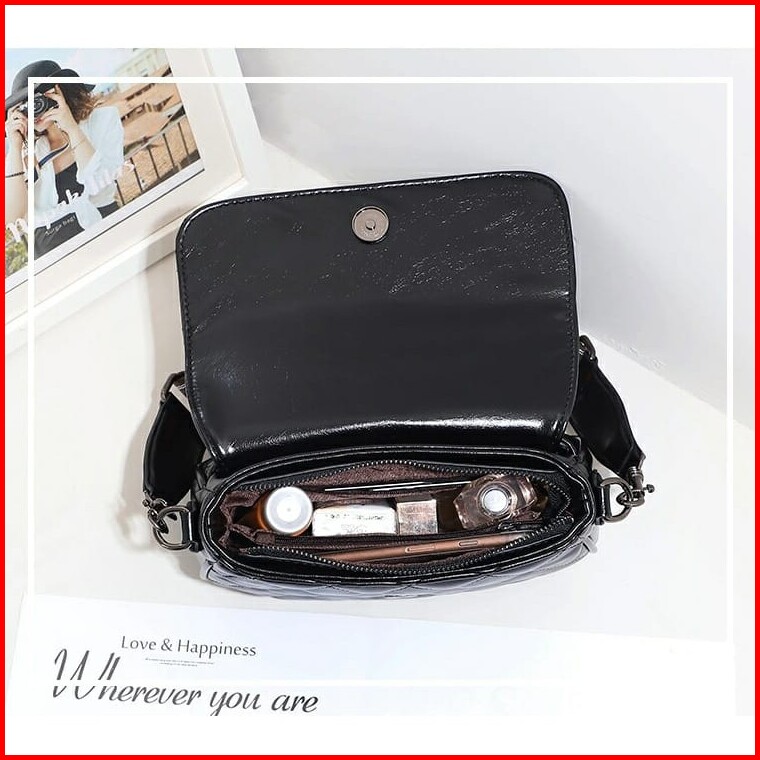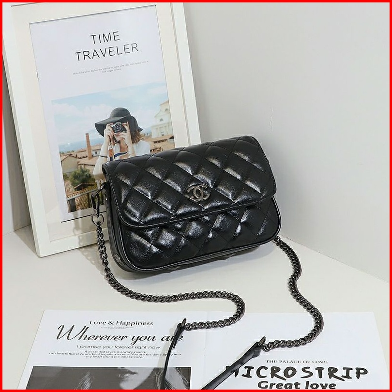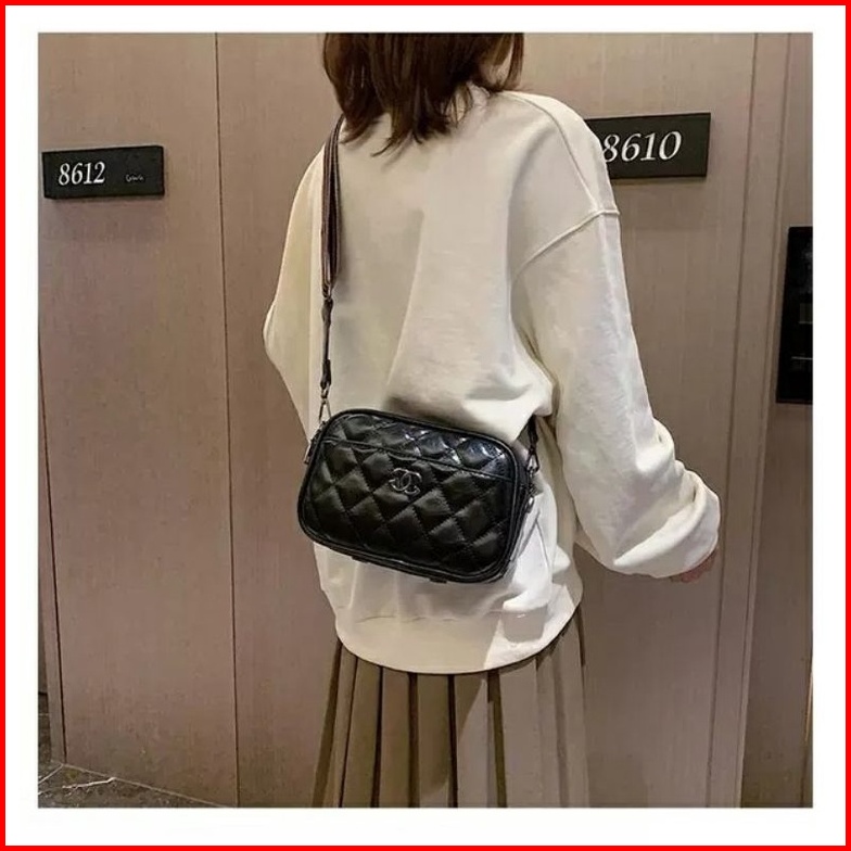Zrbr - Tas Slempang Wanita Zrbr Shelf Leather Crossbody Wanita 2 Tali - Chenel Sling Bag 9027