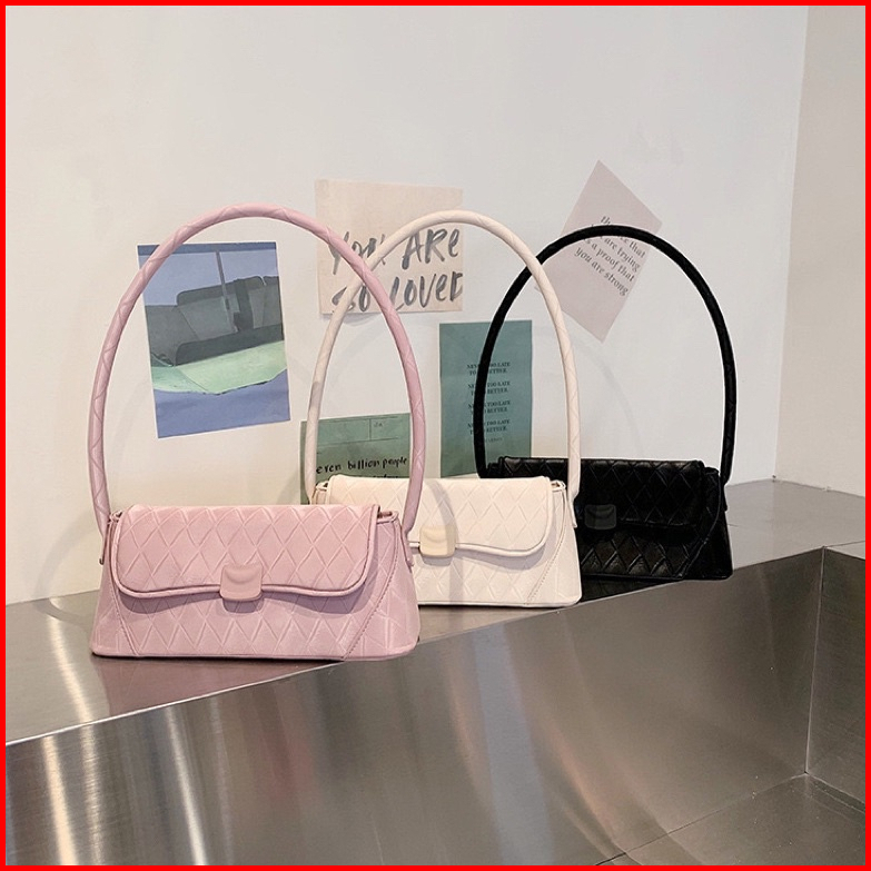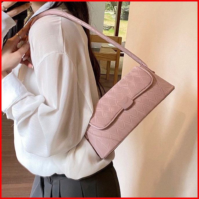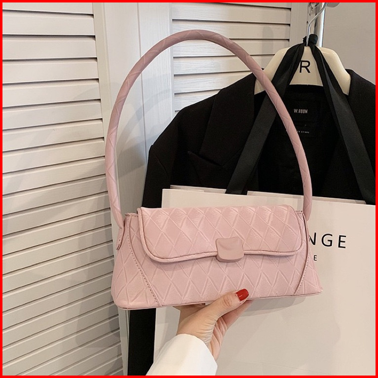 Tas Bahu Kulit Ketiak 2023 Tas Tekstur Warna Solid Baru Dengan Desain Berlian Yang Indah Tas Wanita