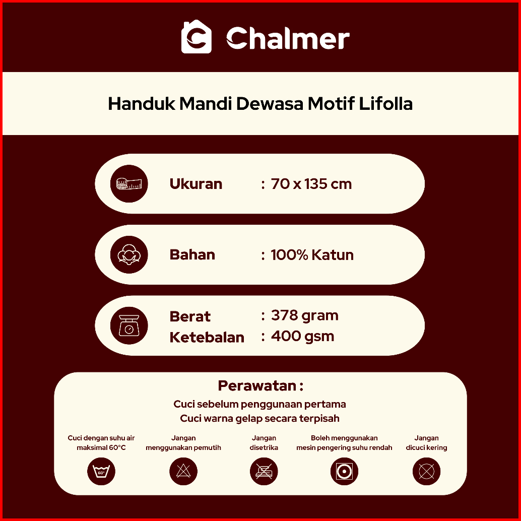 Handuk Mandi Chalmer 70 X 135 Cm Motif Lifolla Handuk Mandi Dewasa Ukuran Besar