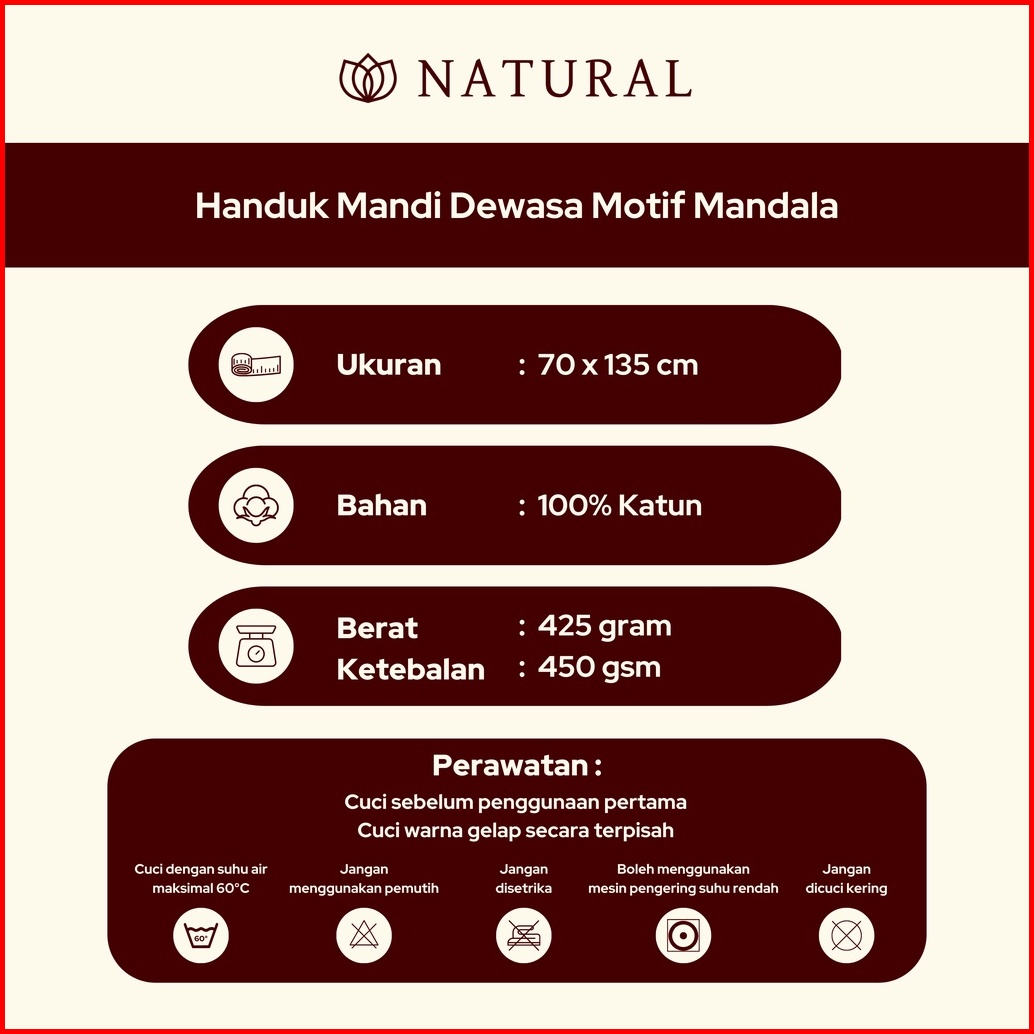 Handuk Mandi Natural By Chalmer 70 X 135 Cm Motif Mandala Handuk Mandi Dewasa Ukuran Besar