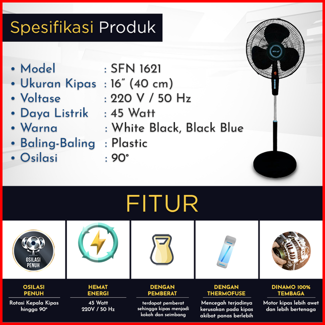 Sekai Stand Fan Kipas Angin 16 Inch Sfn1621