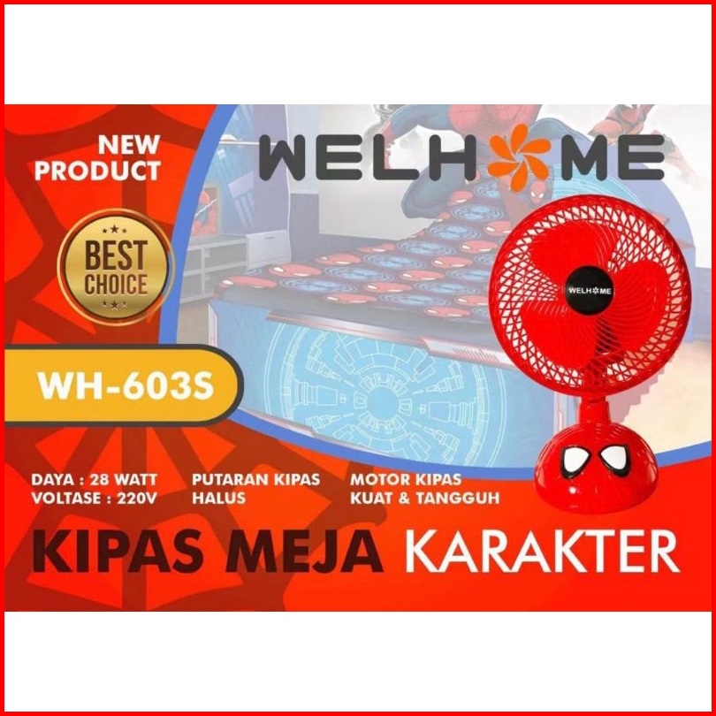 Welhome Deskfan Kipas Meja Karakter Welhome Wh-602h Wh-603s Wh-601d Ukuran 6 Spiderman Hellokitty Doraemon