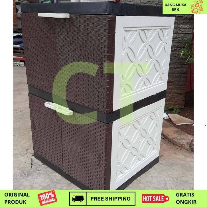 Lemari Plastik Akako Rotan Susun 2 tempat baju akako susun 2 lemari baju anak akako mini Tanpa Dp