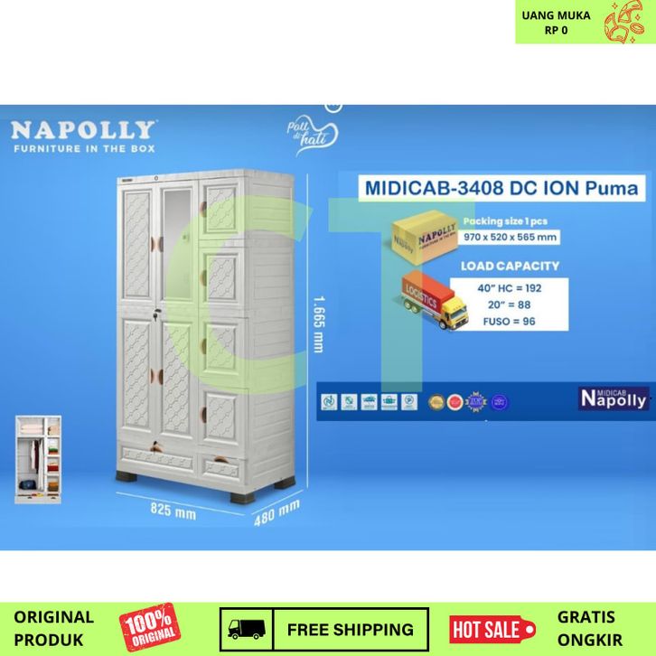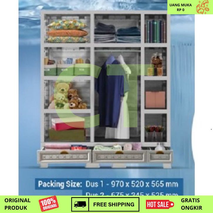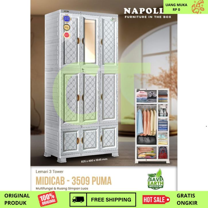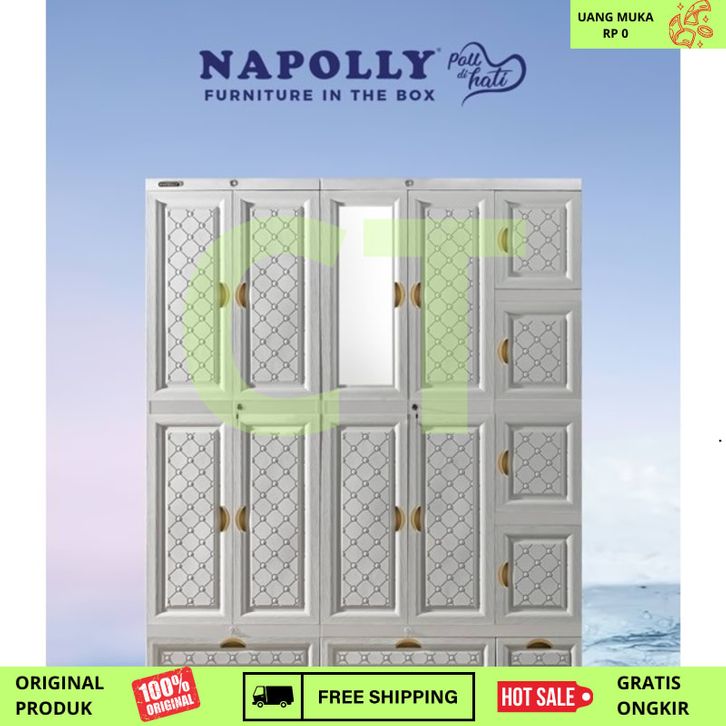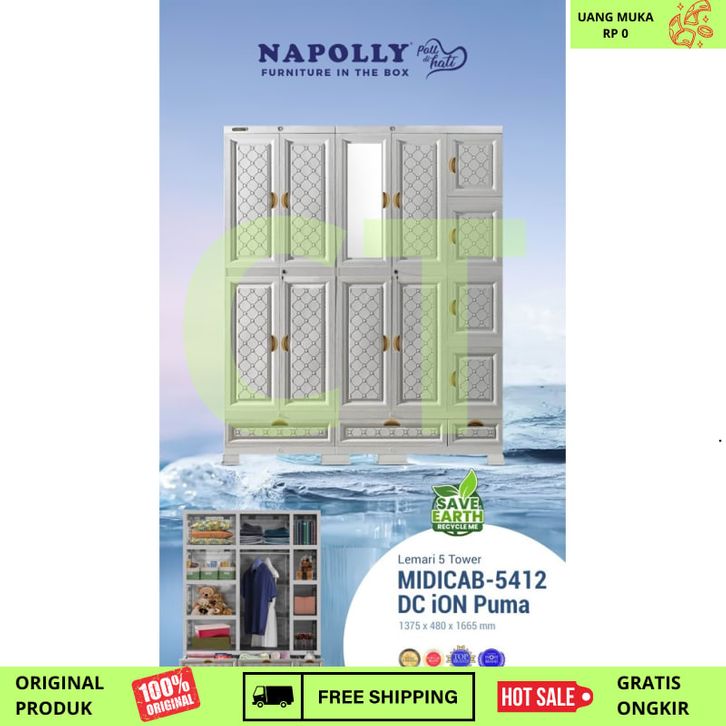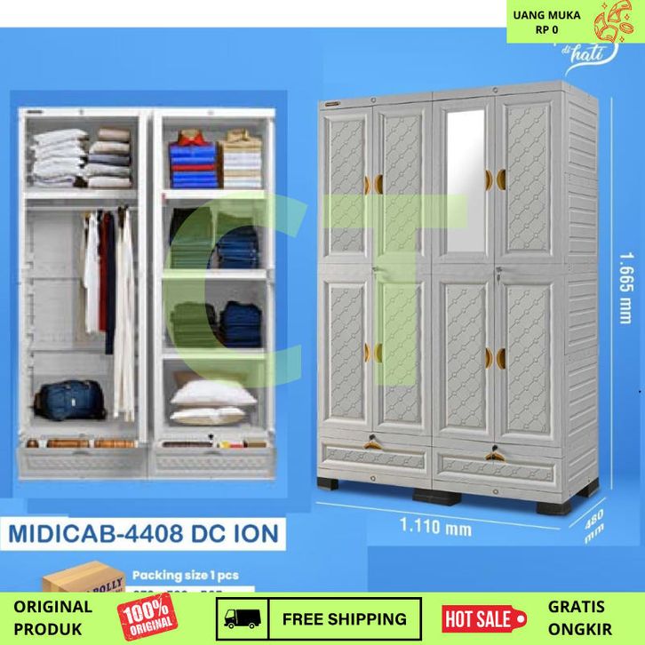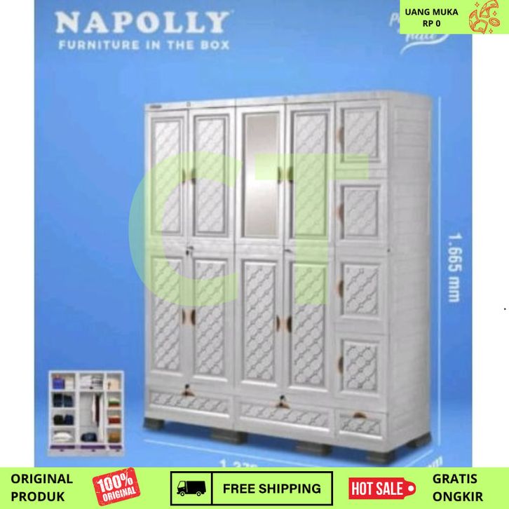 Lemari Pakaian Plastik GANTUNG RAK Napolly 5 PINTU MIDICAB 5412 DC KACA CERMIN KUNCI JUMBO BESAR KOKOH KUAT TEBAL Tanpa