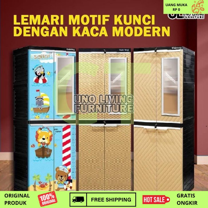 Lemari Plastik Tabitha Ls2p Cermin Kunci Lemari Pakaian 4 susun Full Kunci dan Cermin Tanpa Dp