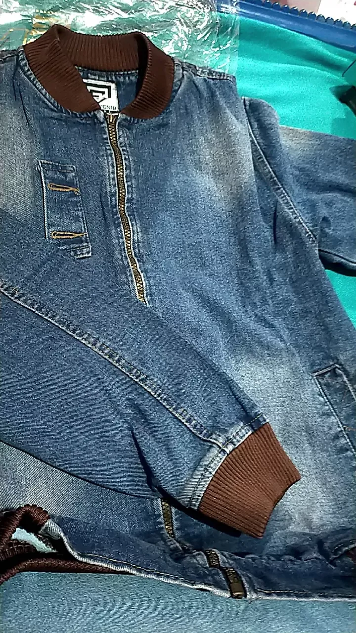 Jaket Boomber Cowok Jaket Boomber Jeans Kerah Rib Karet Biowos Navy Resleting Polos Pria Wanita Kasual Fashion Cowok