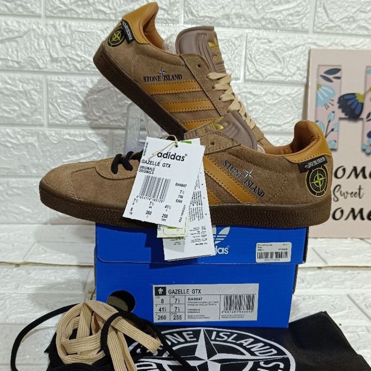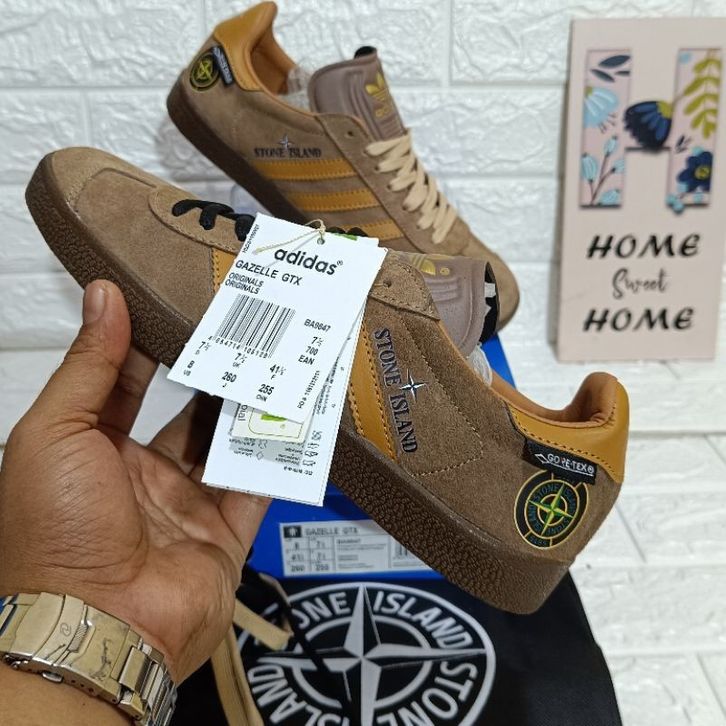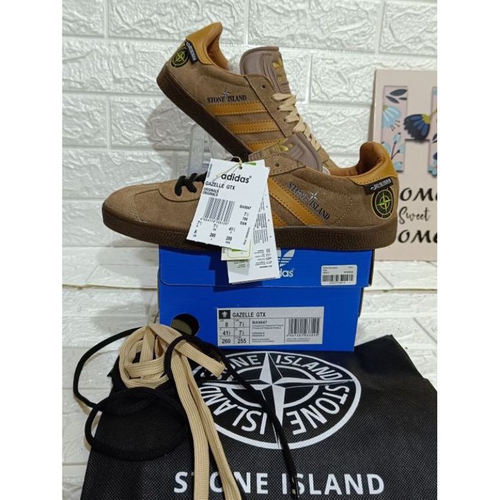 Sepatu Adidas Stone Island X Gazelle Brown Original Sneakers Casual Pria Wanita Keren Berkualitas
