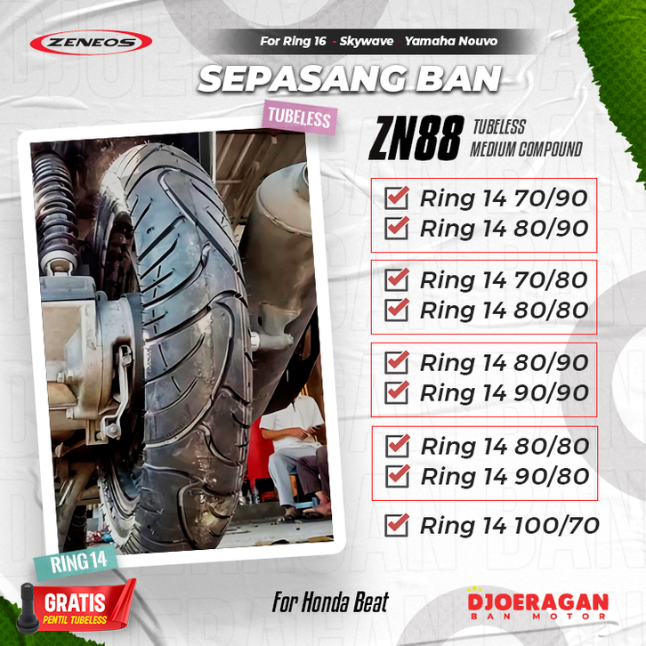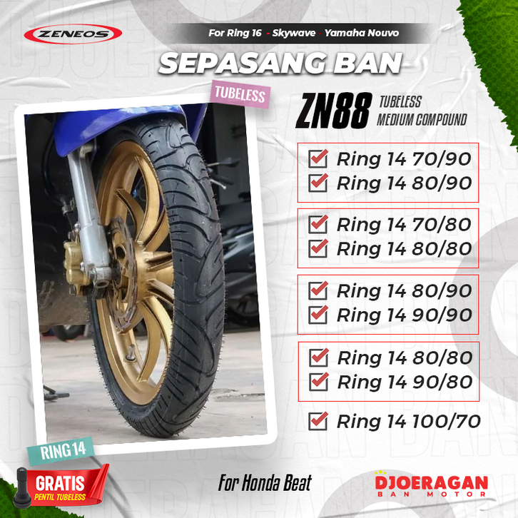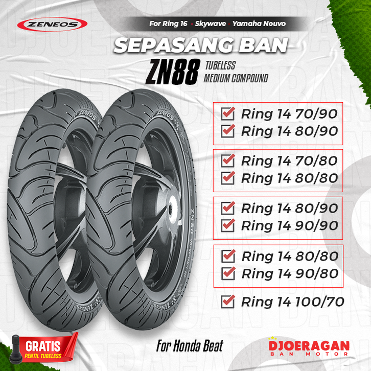 Sepasang / Satuan Ban motor matic Ring 14 Zeneos ZN88 70 90 Beat Vario Fino Tubeless