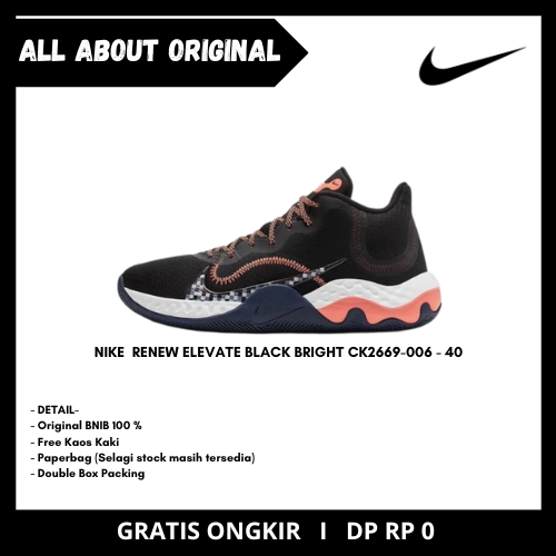 SEPATU BASKET NIKE ORIGINAL RENEW ELEVATE BLACK BRIGHT CK2669-006 - 40 Sepatu Nike Original BNIB