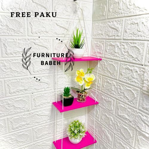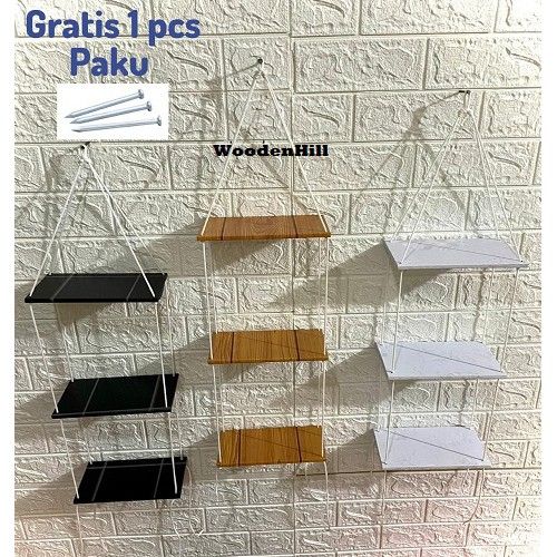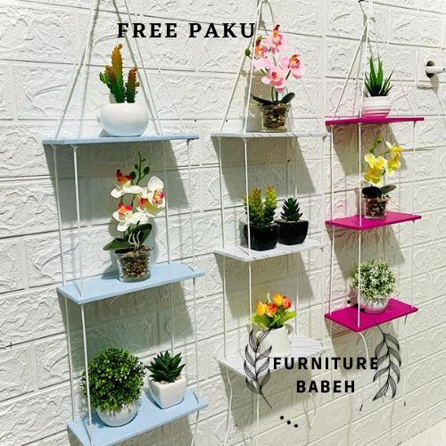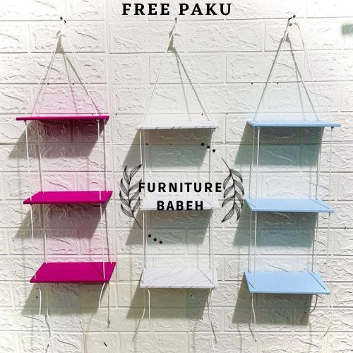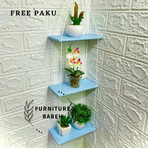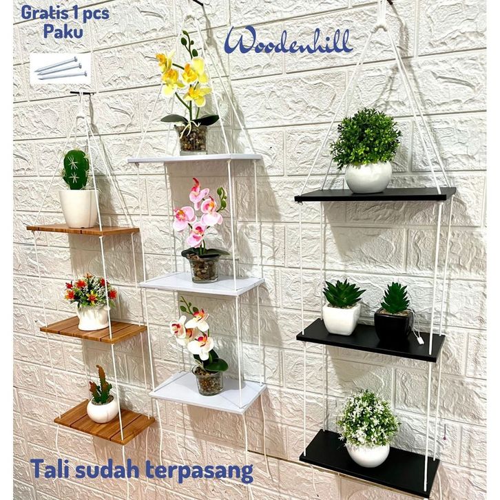 Furniture Rak gantung minimalis susun 3 kekinian hambalan gantung tali sudah terpasang rak gantung serbaguna