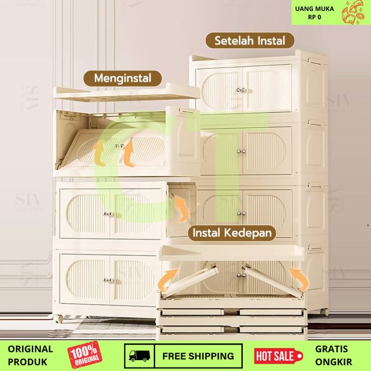 SIV 55 70cm Lemari Plastik Susun Besar Anak Kotak Penyimpanan Lipat Multifungsi(2/3/4/5 Susun) Tanpa Dp
