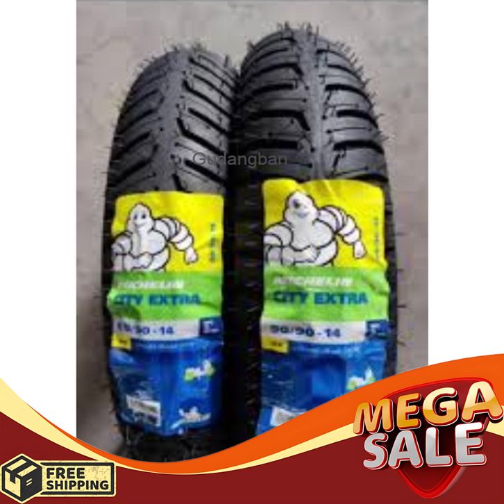 Paket Michelin City Extra 80 90 14 dan 90 90 14 Tubeless Ban luar Motor Matic FREE PENTIL