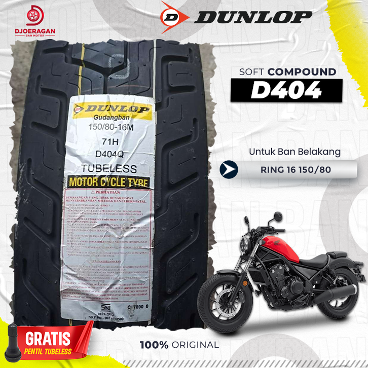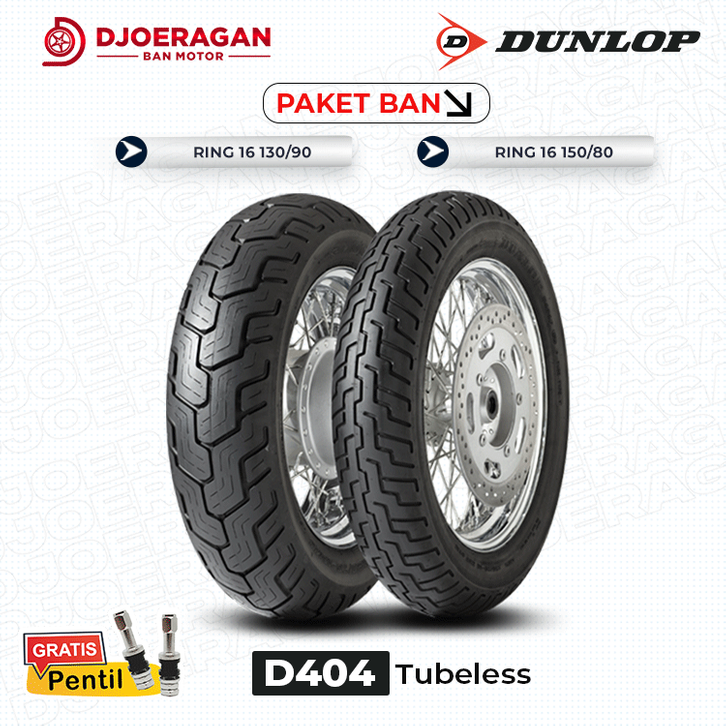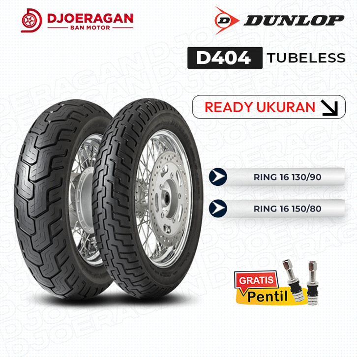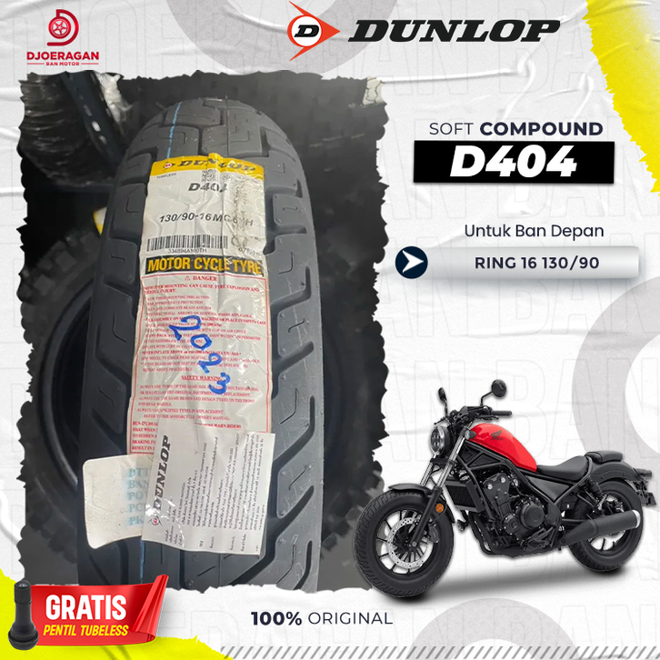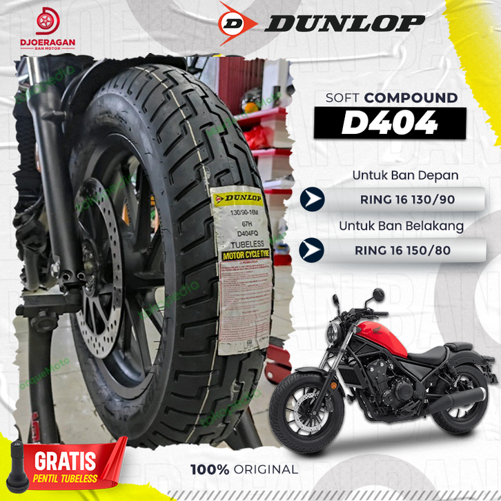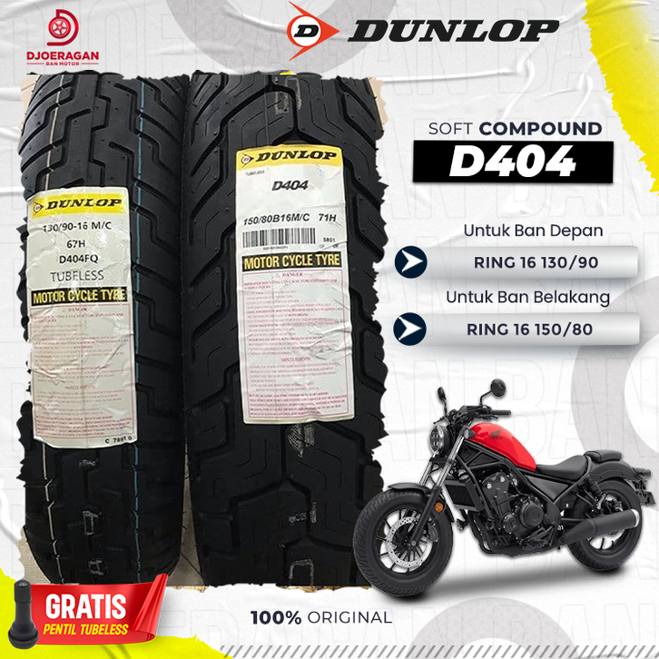 Sepasang Ban Motor Honda Rebel / Harley Davidson Dunlop D404 Ukuran 130/90-16 150/80-16 Tubeless paket ban